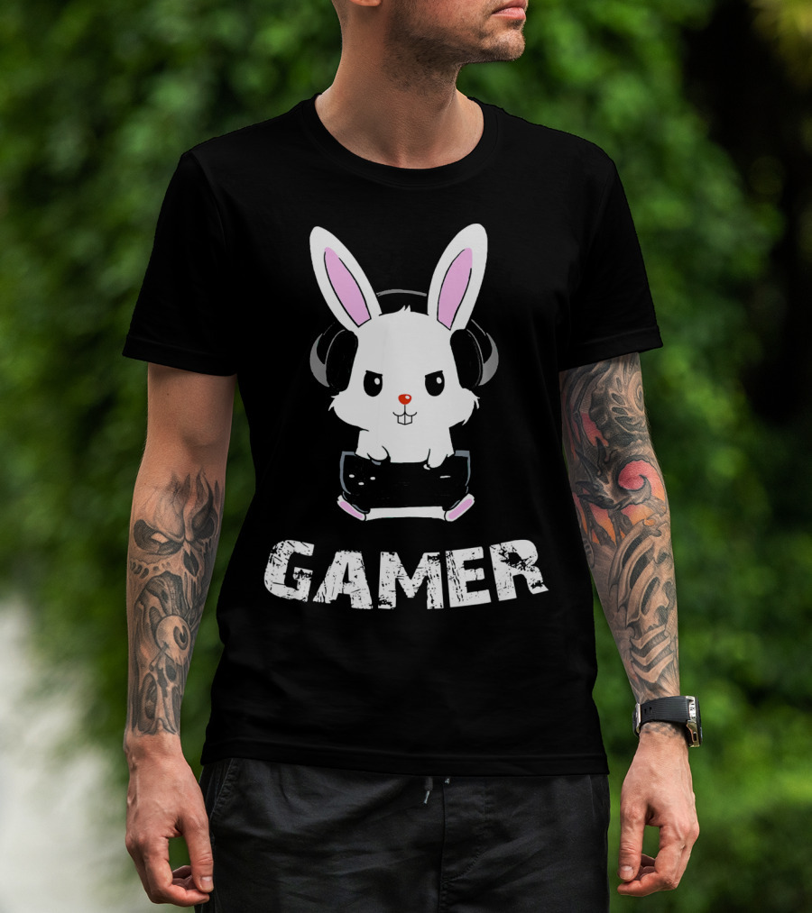 Gamer Bunny Headphones Easter Boys Gaming Men T-Shirt
