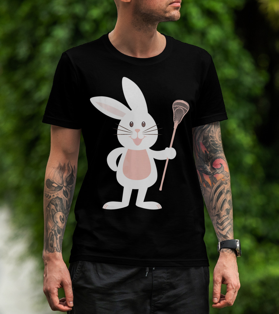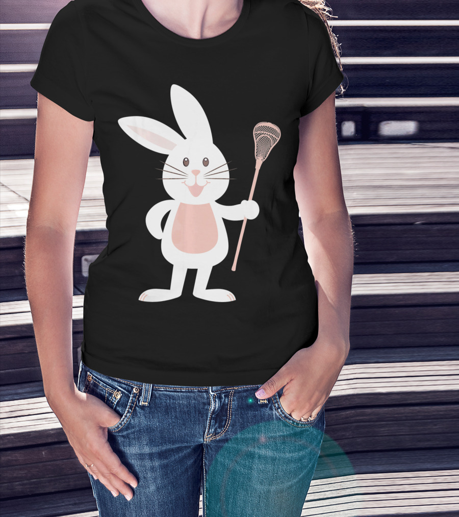 Cute Lacrosse Easter Bunny Holding Stick T-Shirt