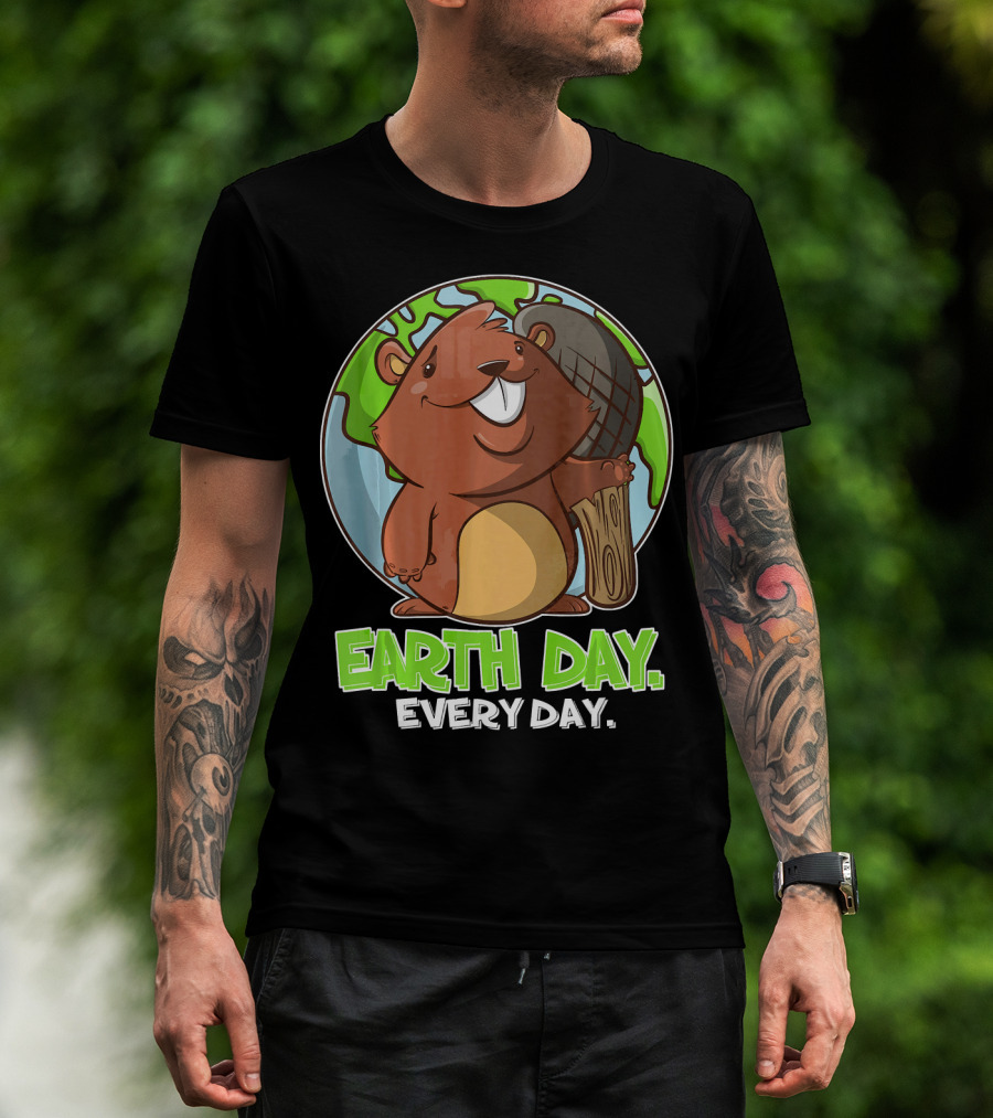 Earth Day Every Day Cute Beaver And Planet T-Shirt