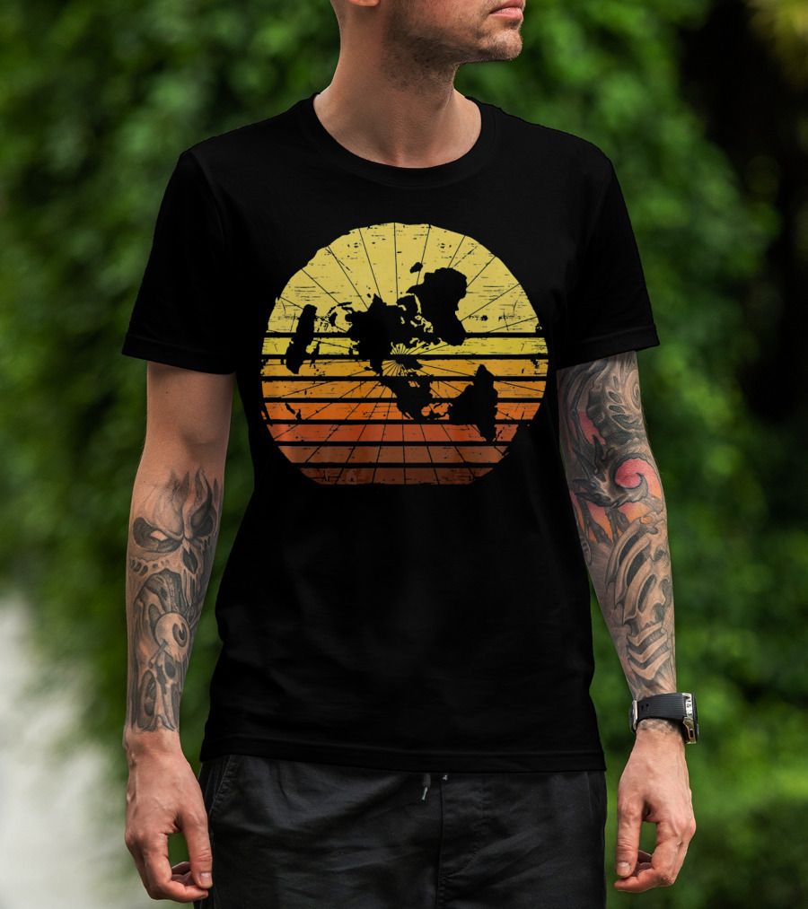 Flat Earth Map Vintage Retro Distressed Stripes T-Shirt
