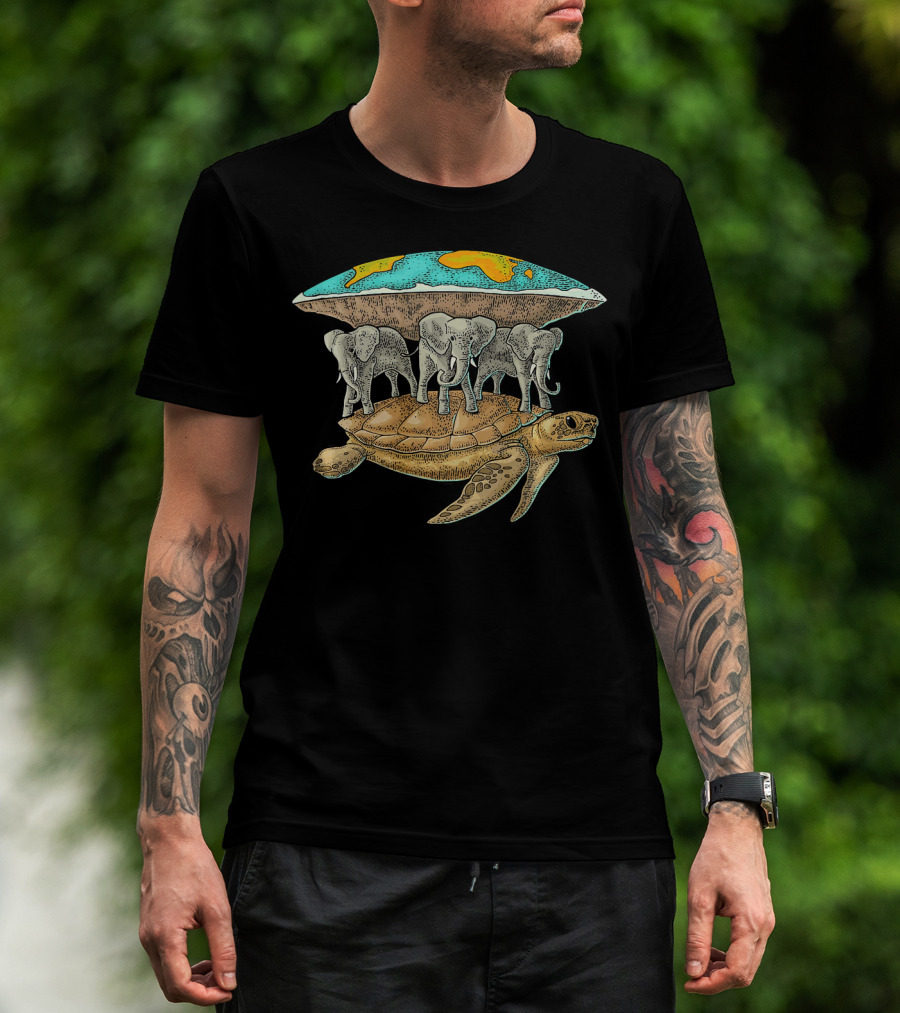 The Flat Earth Elephants on World Turtle T-shirt is designed for everyday wear and a consistent fit. Fabric is pre-shrunk ring-spun cotton with durable stitching. See the size chart below for exact measurements.