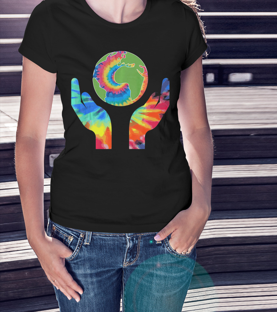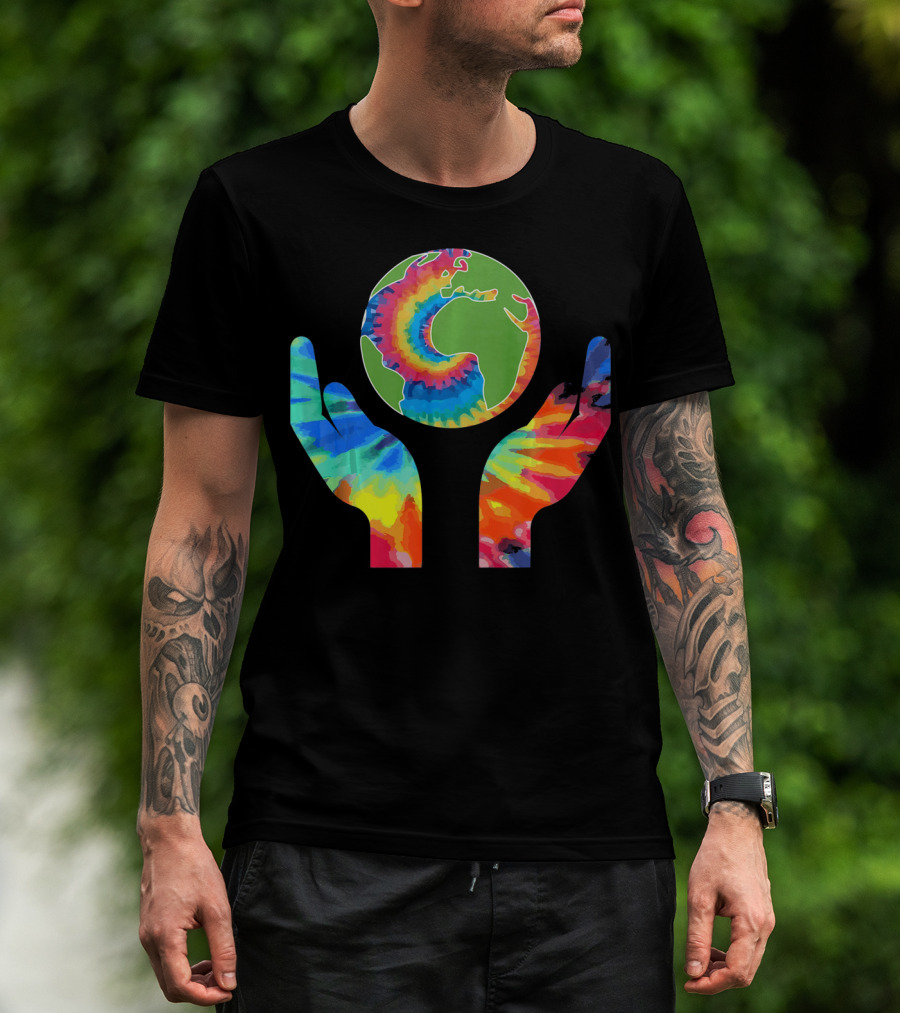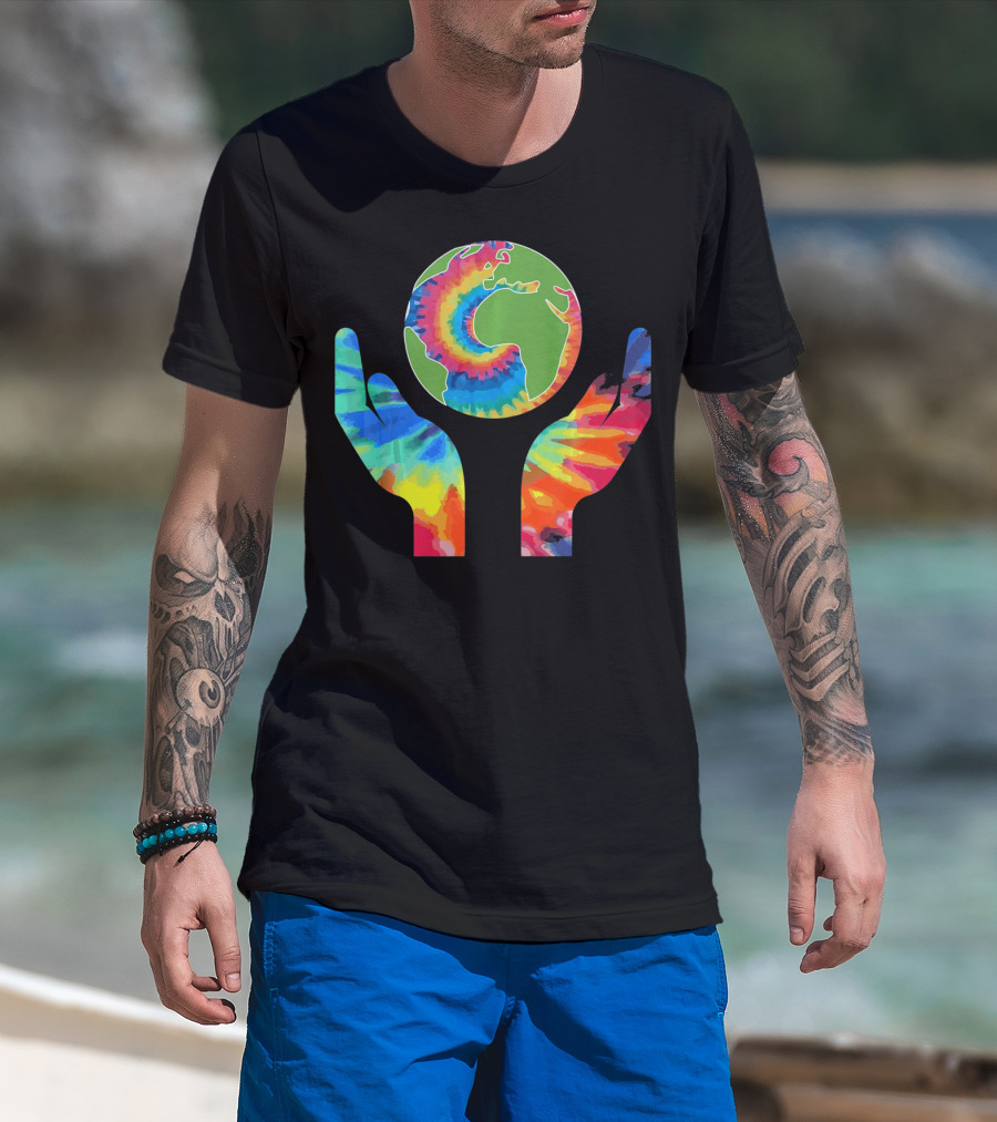 Earth Day Tie-Dye Hands Holding Planet Climate Change Global Warming T-Shirt