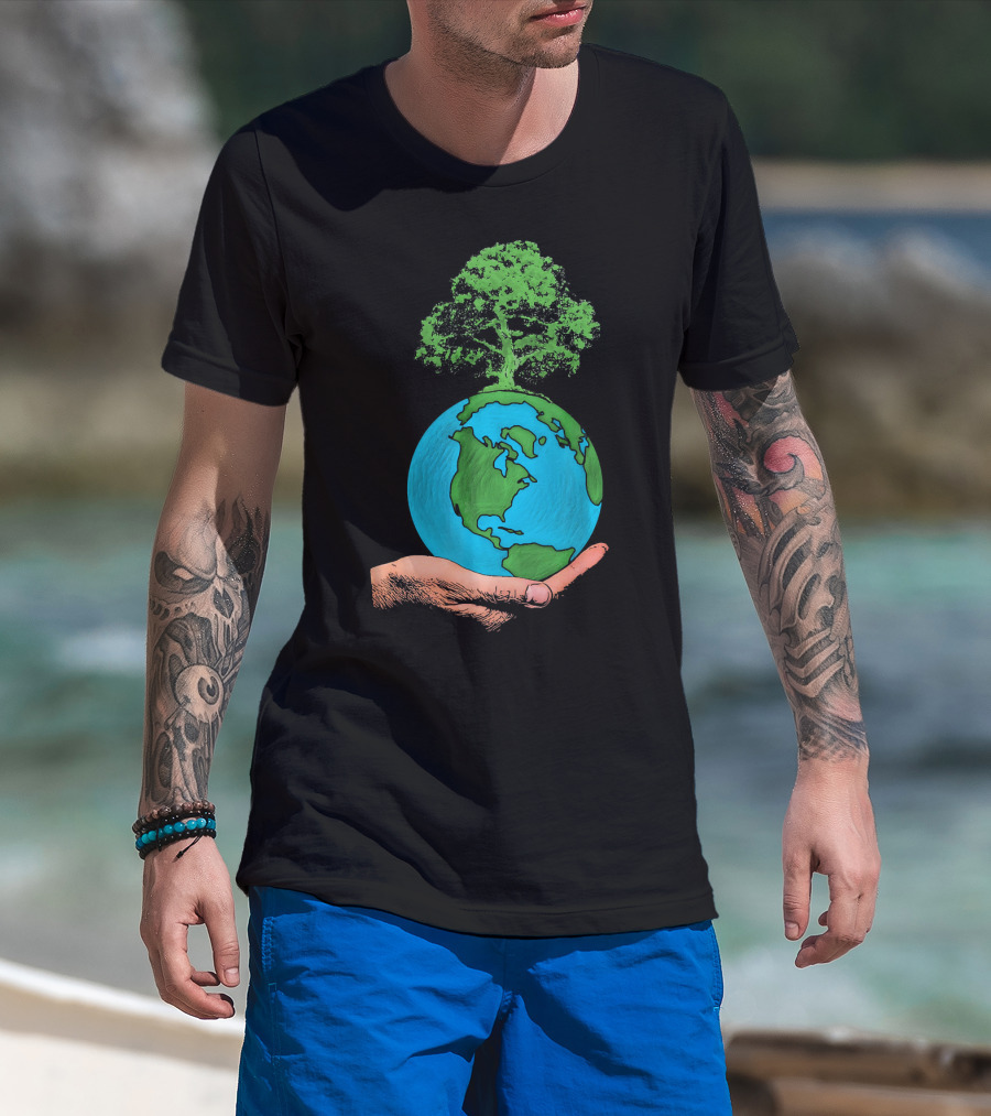 The Earth Day Protect Green Environment Tree on Globe in Hand T-shirt is designed for everyday wear and a consistent fit. Fabric is pre-shrunk ring-spun cotton with durable stitching. See the size chart below for exact measurements.