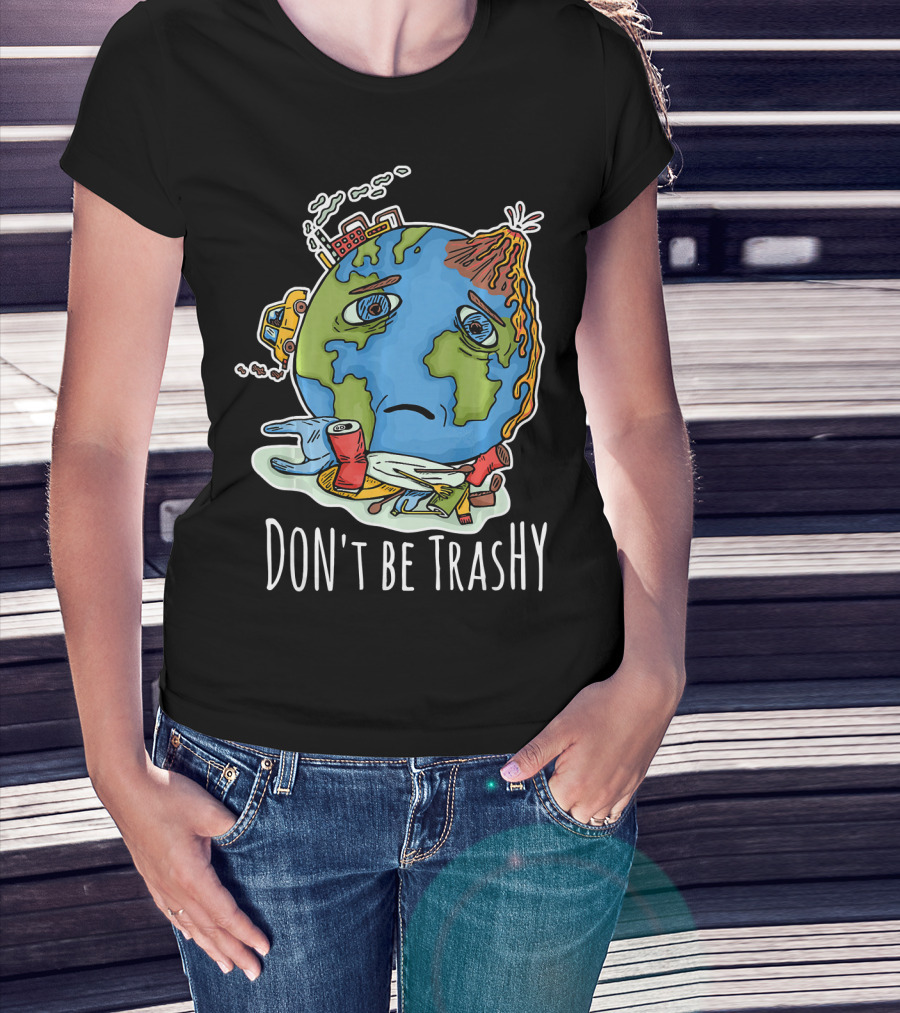 Earth Day Funny Don't Be Trashy Sad Earth Cartoon Pollution Elements T-Shirt