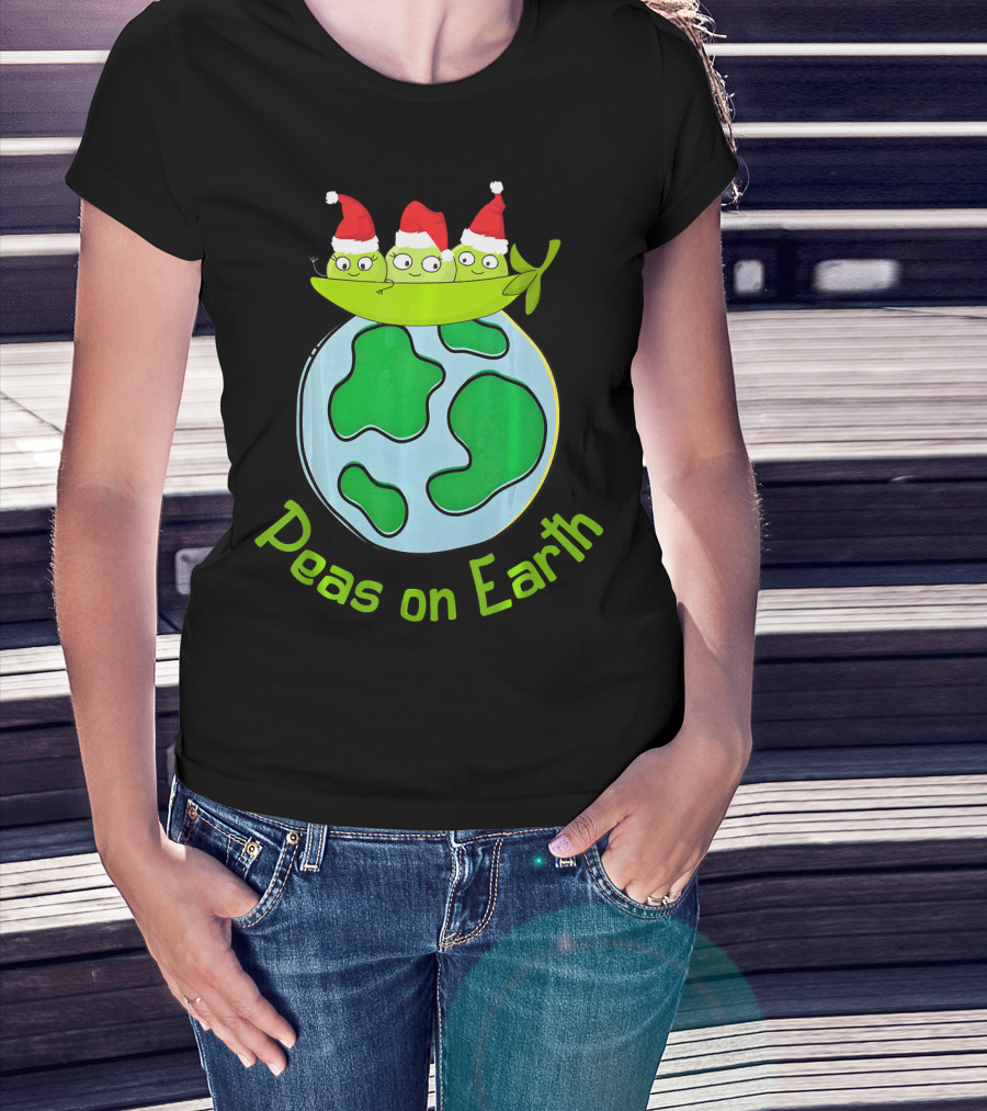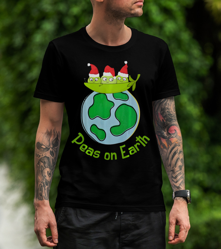Christmas Peas On Earth With Santa Hat Vegetables On Globe T-Shirt