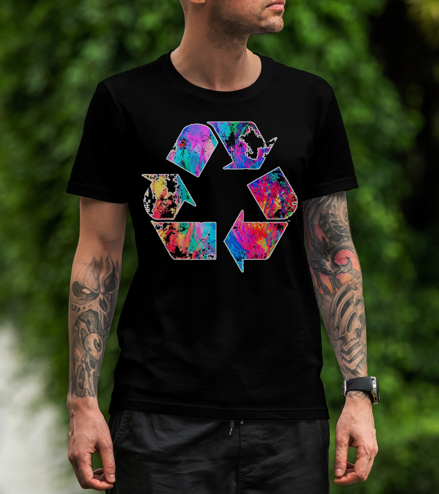 The Earth Day Vintage Recycle Reduce Reuse Psychedelic Colorful T-shirt is designed for everyday wear and a consistent fit. Fabric is pre-shrunk ring-spun cotton with durable stitching. See the size chart below for exact measurements.