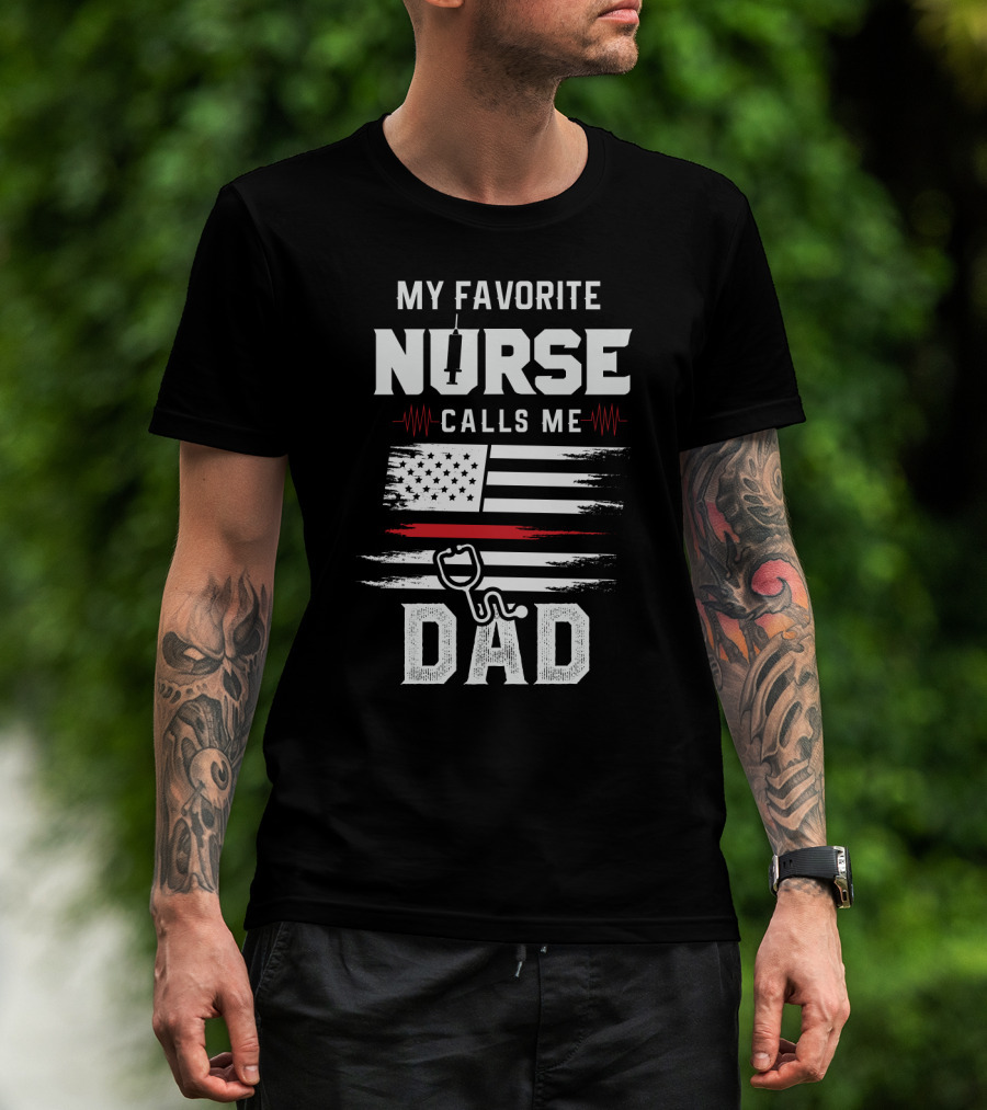 MY FAVORITE NURSE CALLS ME DAD USA FLAG STETHOSCOPE T-Shirt