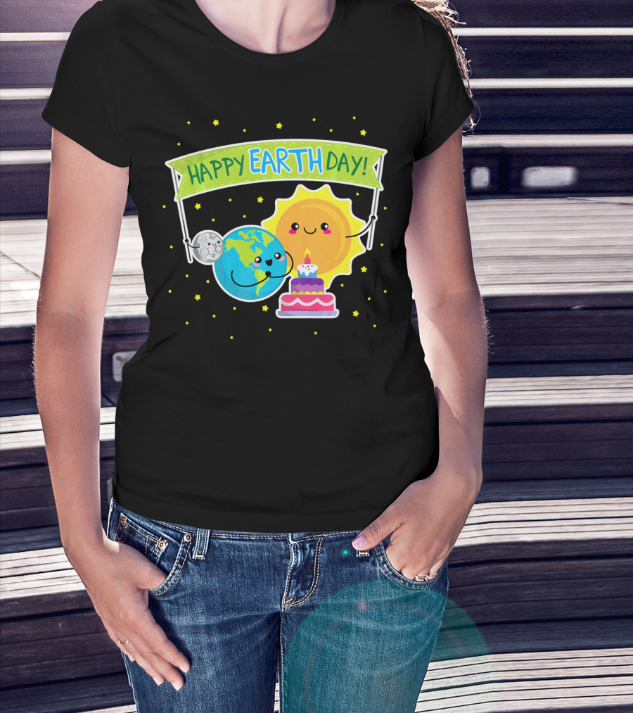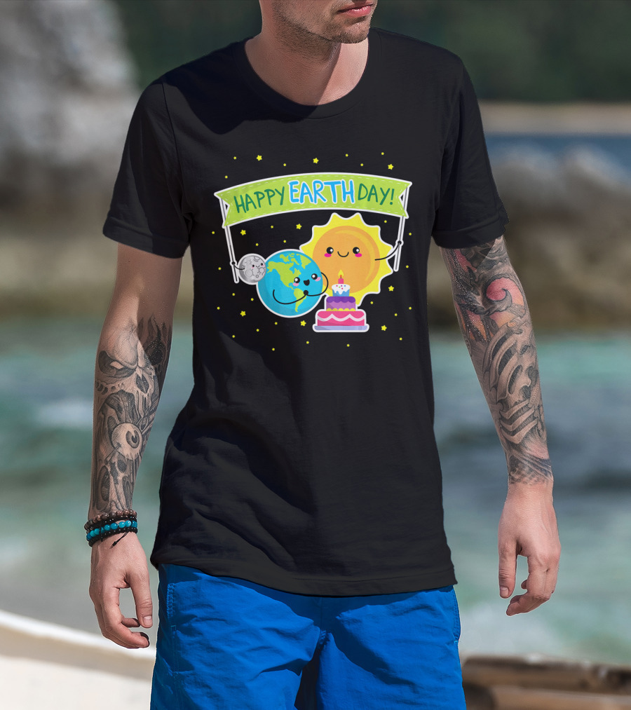 Happy Earth Day Cute Earth Sun Moon Cake T-Shirt