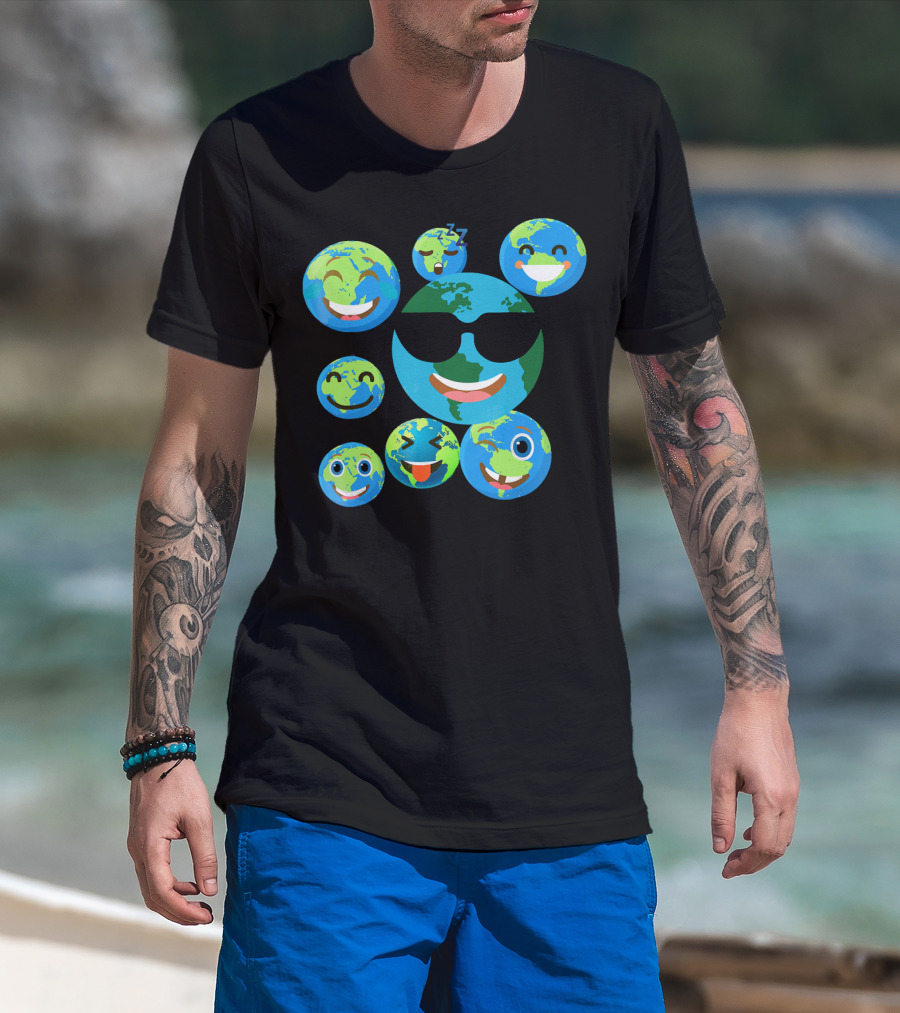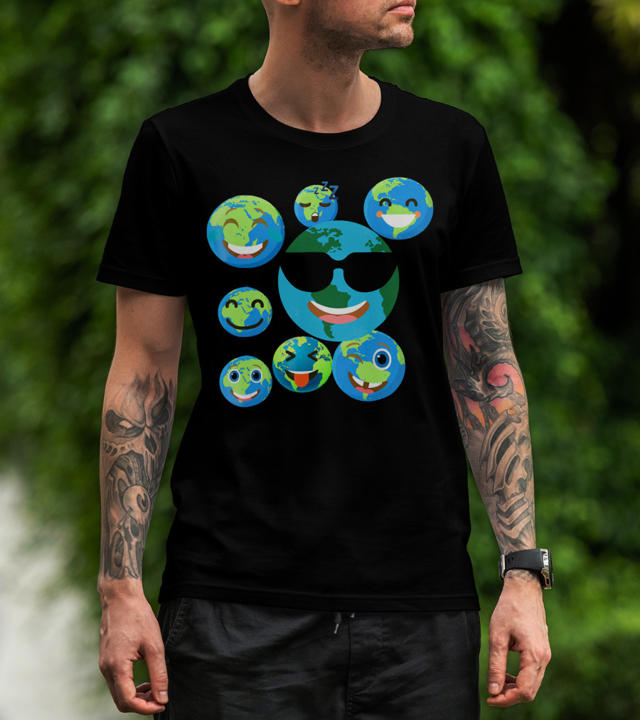 Cute Earth Emoji Smileys Emotion Faces T-Shirt