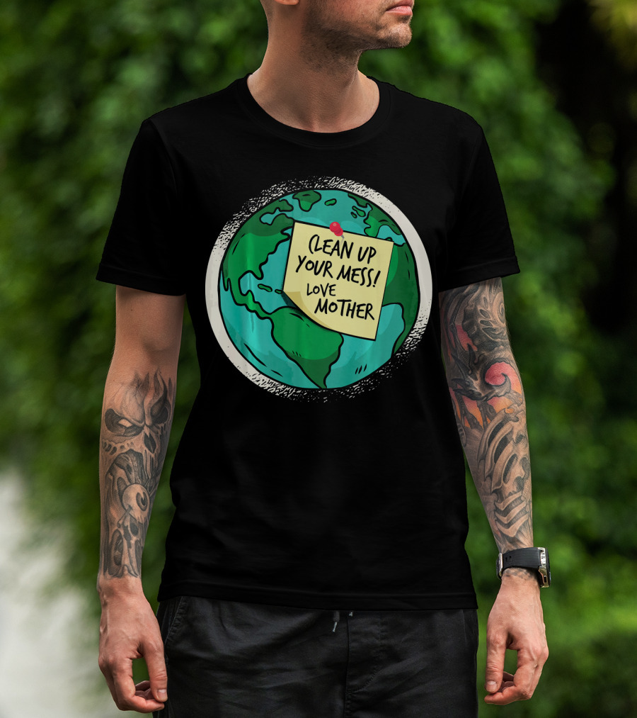 Clean Up Your Mess Love Mother Earth Globe Note Message T-Shirt