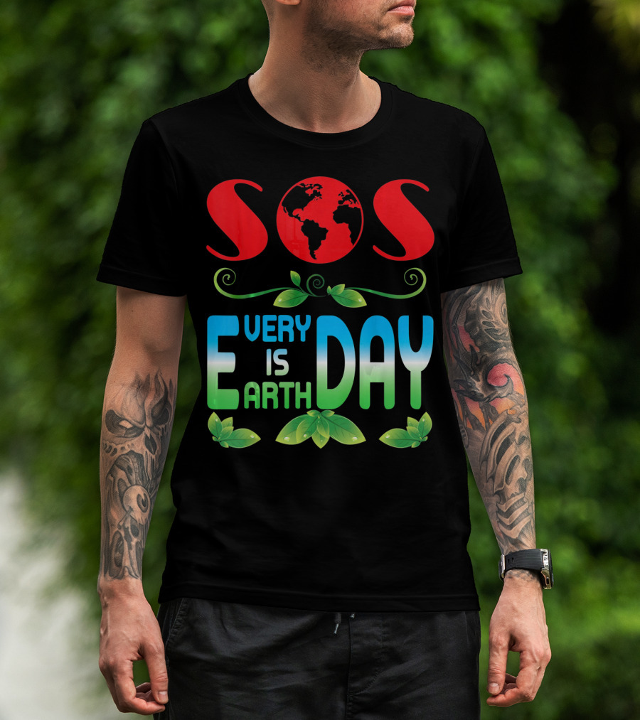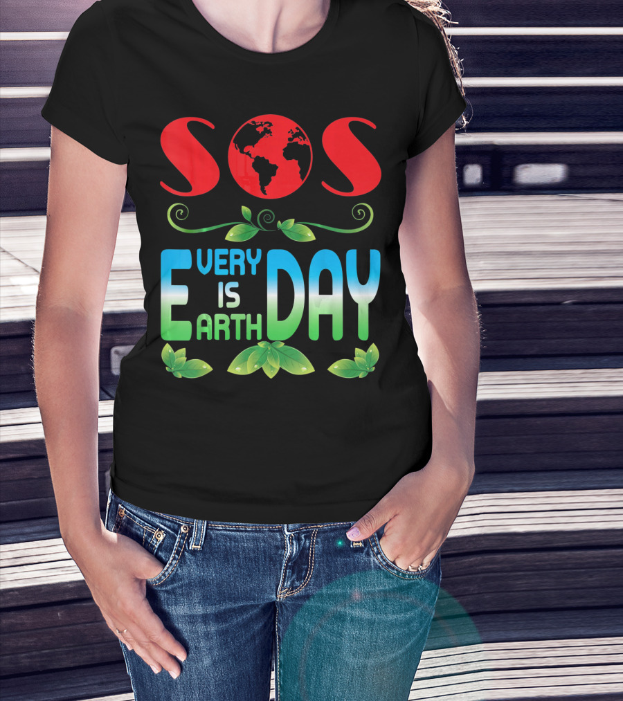The SOS Every Day Is Earth Day T-shirt is designed for everyday wear and a consistent fit. Fabric is pre-shrunk ring-spun cotton with durable stitching. See the size chart below for exact measurements.