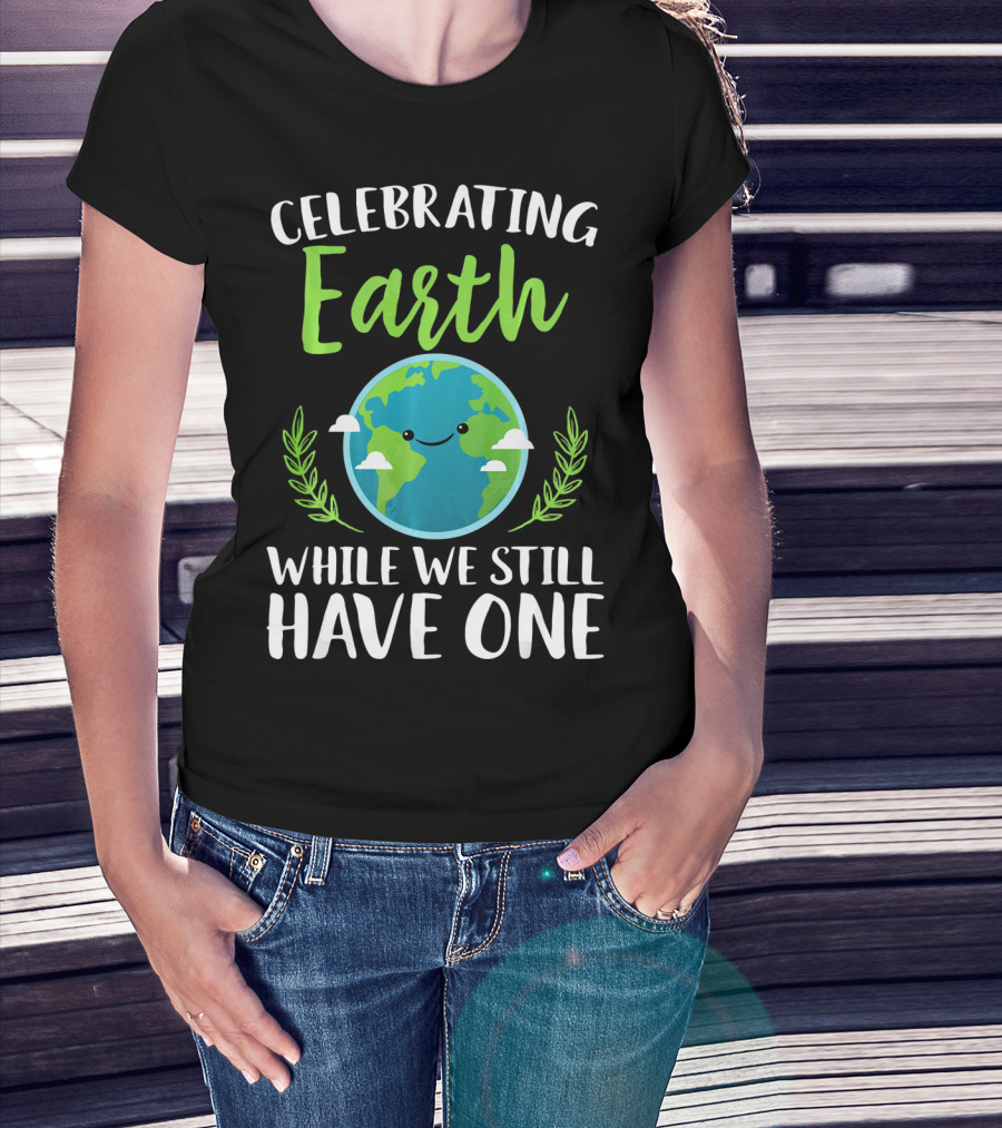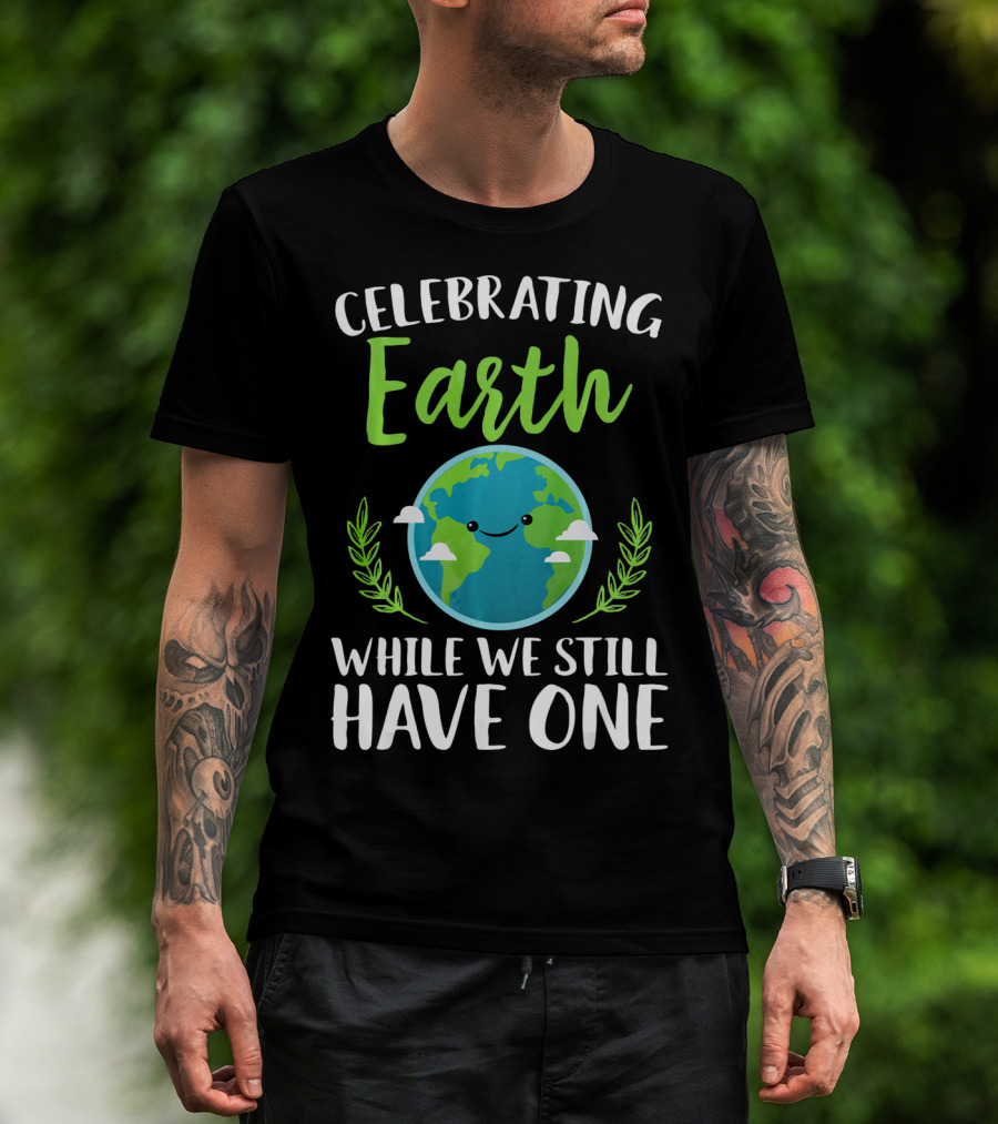 Celebrating Earth While We Still Have One Earthy Smiling Globe With Green Leaves T-Shirt