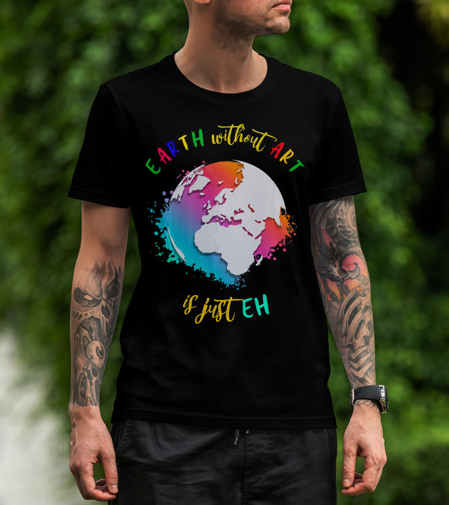 Earth Without Art Is Just Eh Multicolored Watercolor Planet T-Shirt