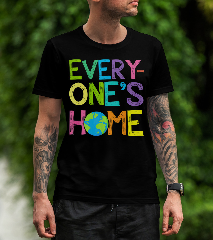 The Earth Day Everyone's Home Planet T-shirt is designed for everyday wear and a consistent fit. Fabric is pre-shrunk ring-spun cotton with durable stitching. See the size chart below for exact measurements.