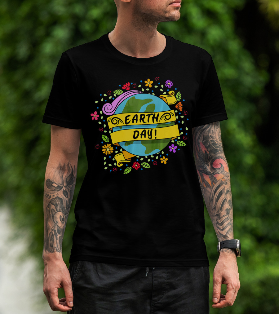 Earth Day Floral Planet Banner T-Shirt