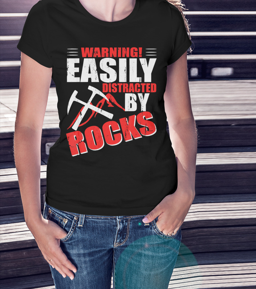 Warning Easily Distracted By Rocks Funny Geology Geologist Science T-Shirt