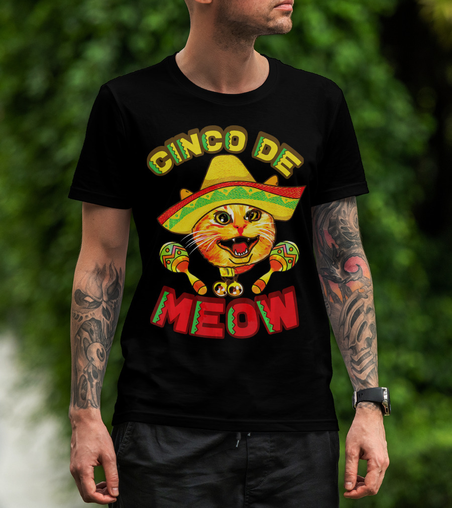 Cinco De Meow Cat With Sombrero And Maracas Fiesta T-Shirt