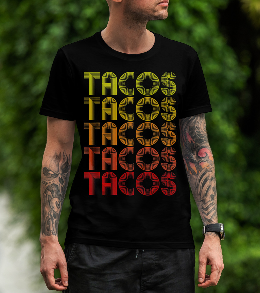 The Vintage Tacos Lover Cinco De Mayo Retro Lines T-shirt is designed for everyday wear and a consistent fit. Fabric is pre-shrunk ring-spun cotton with durable stitching. See the size chart below for exact measurements.