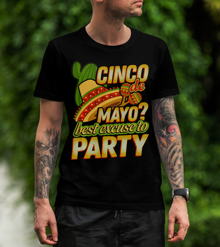 Cinco De Mayo Best Excuse To Party With Sombrero And Maracas T-Shirt