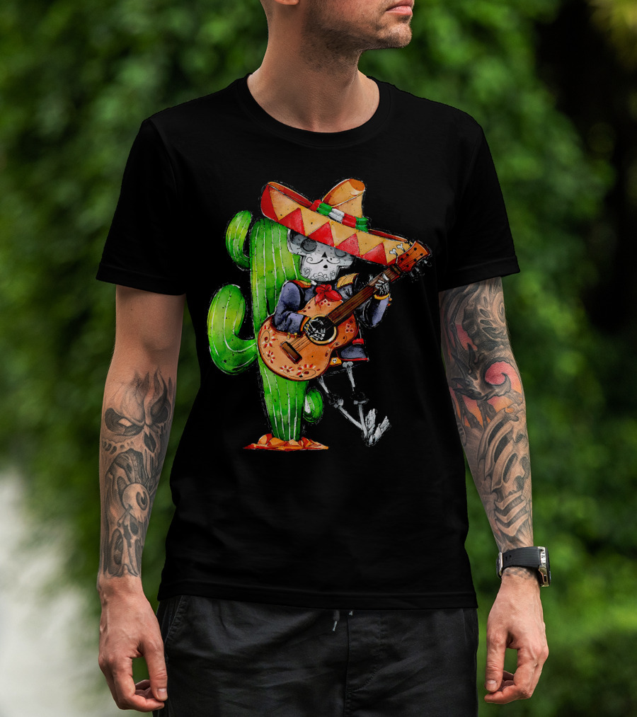 Mexican Independence Cinco De Mayo Mariachi Skeleton With Sombrero And Guitar T-Shirt