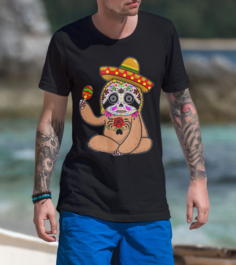 Cinco De Mayo Sloth Day Of The Dead Sombrero Maracas T-Shirt