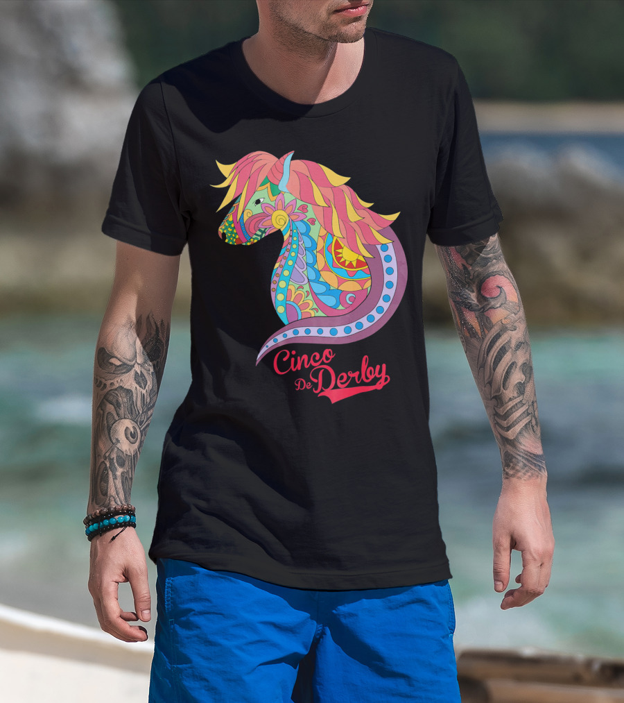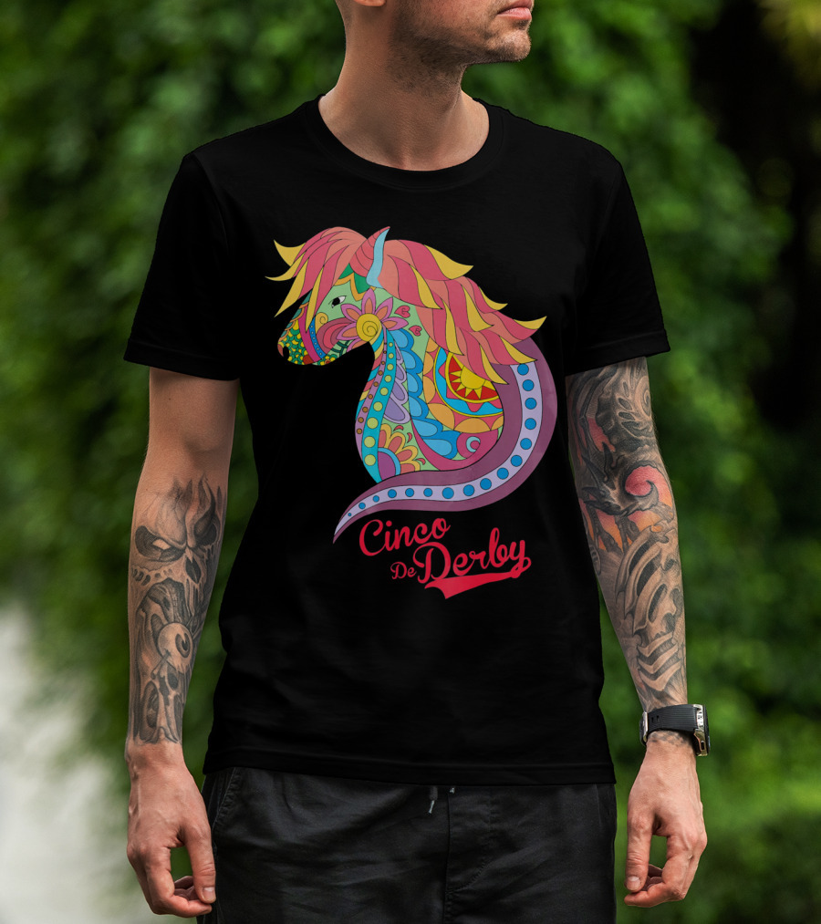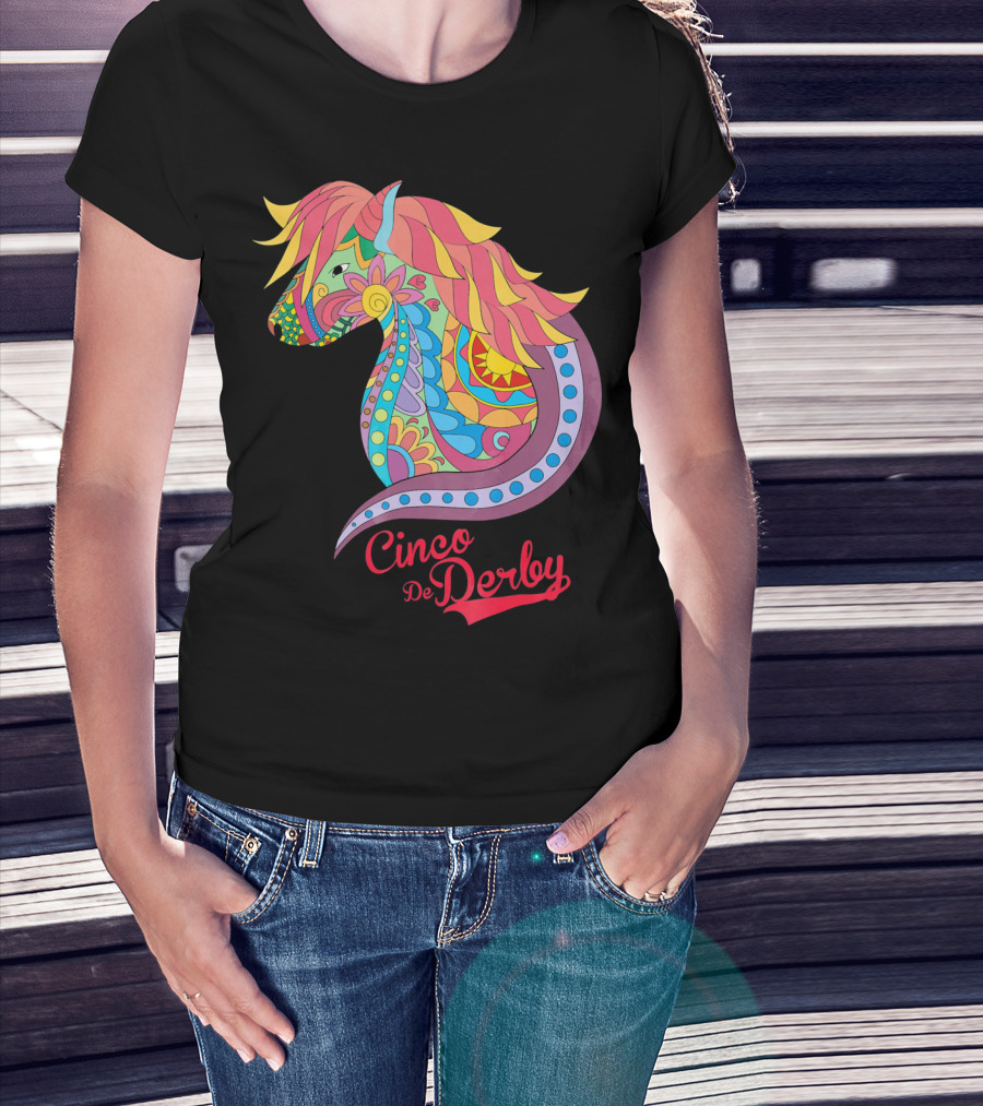 Cinco De Derby Colorful Horse Motif T-Shirt