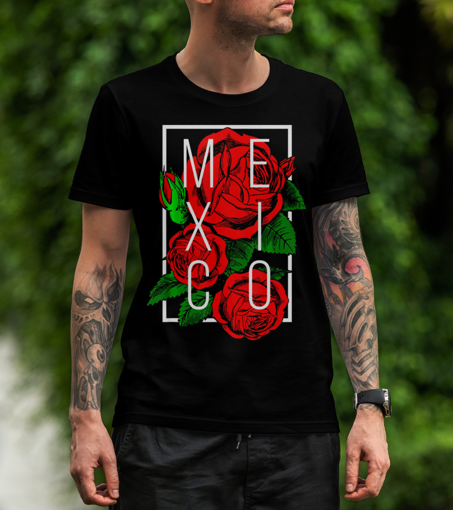 The Mexico Rose Flower Cinco De Mayo T-shirt is designed for everyday wear and a consistent fit. Fabric is pre-shrunk ring-spun cotton with durable stitching. See the size chart below for exact measurements.