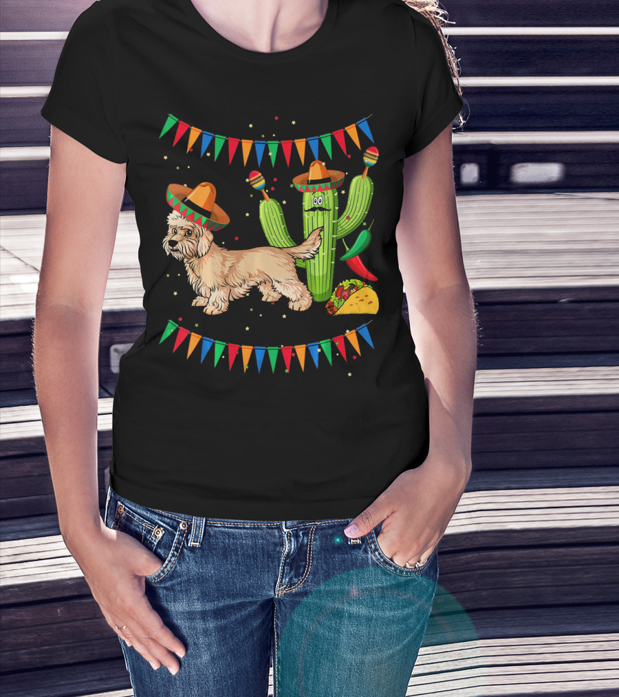 Sombrero Dandi Dinmont Terrier Dog Cactus Taco Maracas Cinco T-Shirt