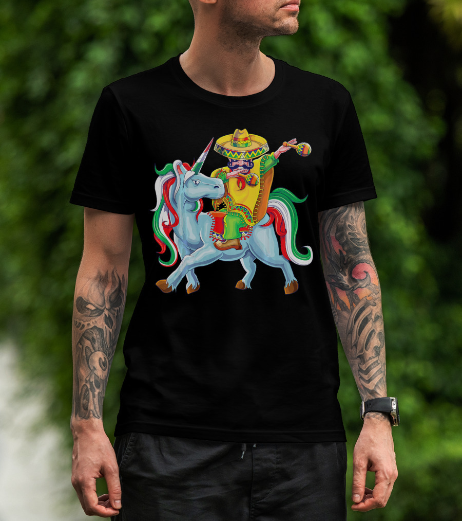 Cinco De Mayo Dabbing Poncho Riding Unicorn T-Shirt