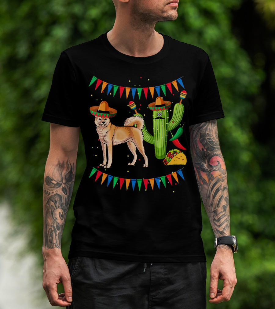 Sombrero Akita Dog Cactus Taco Maracas Mexico Cinco De Mayo T-Shirt