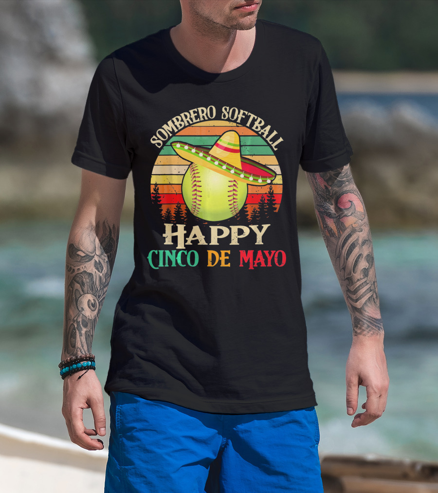 Sombrero Softball Happy Cinco De Mayo T-Shirt