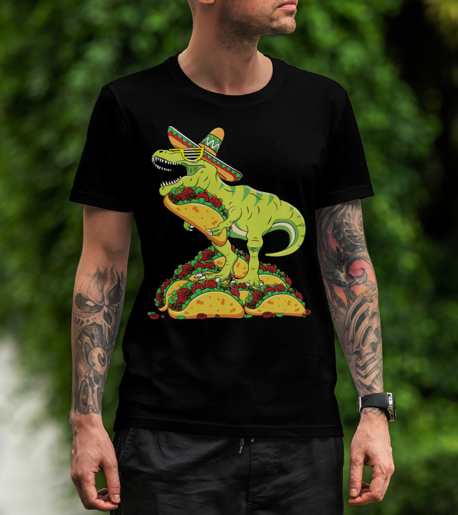T Rex Sombrero Sunglasses Taco Cinco De Mayo Kids Boy T-Shirt