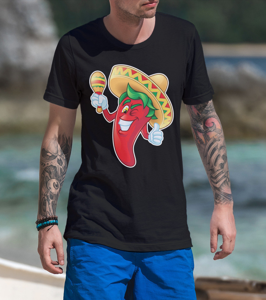 Funny Jalapeno Sombrero Maracas Cinco De Mayo T-Shirt