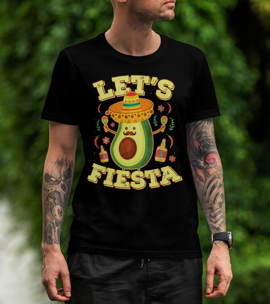 Let's Fiesta Avocado Sombrero Maracas Cinco De Mayo T-Shirt