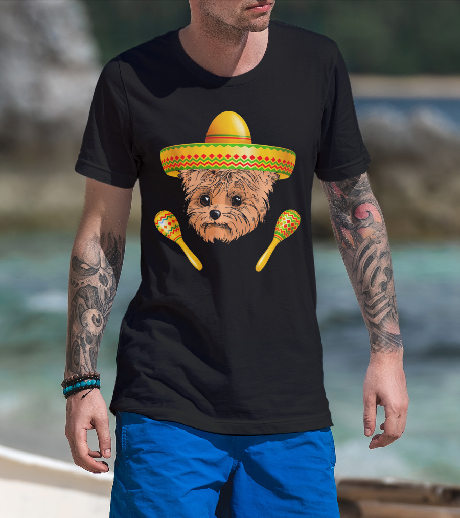 Funny Cinco De Mayo Yorkie Sombrero Maracas T-Shirt