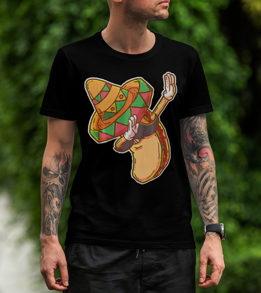 The Cinco De Mayo Sombrero Taco Dabbing T-shirt is designed for everyday wear and a consistent fit. Fabric is pre-shrunk ring-spun cotton with durable stitching. See the size chart below for exact measurements.