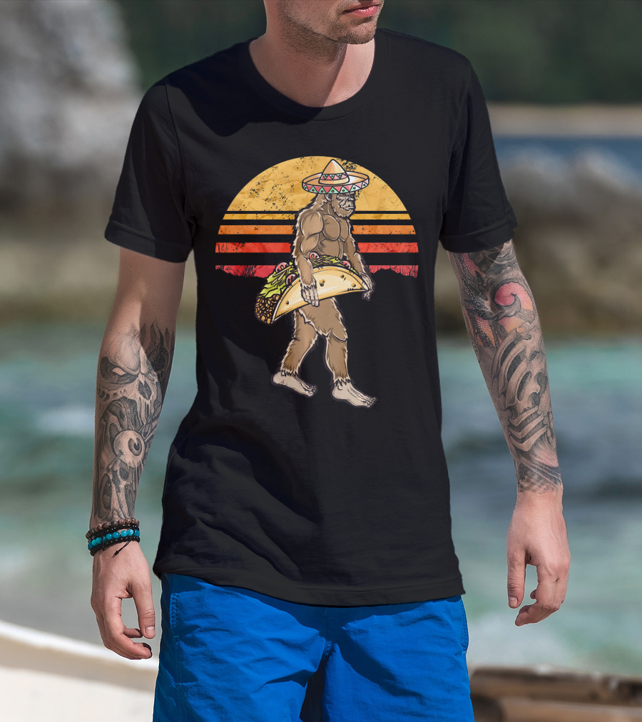 Bigfoot Sombrero Taco Retro Sunset T-Shirt