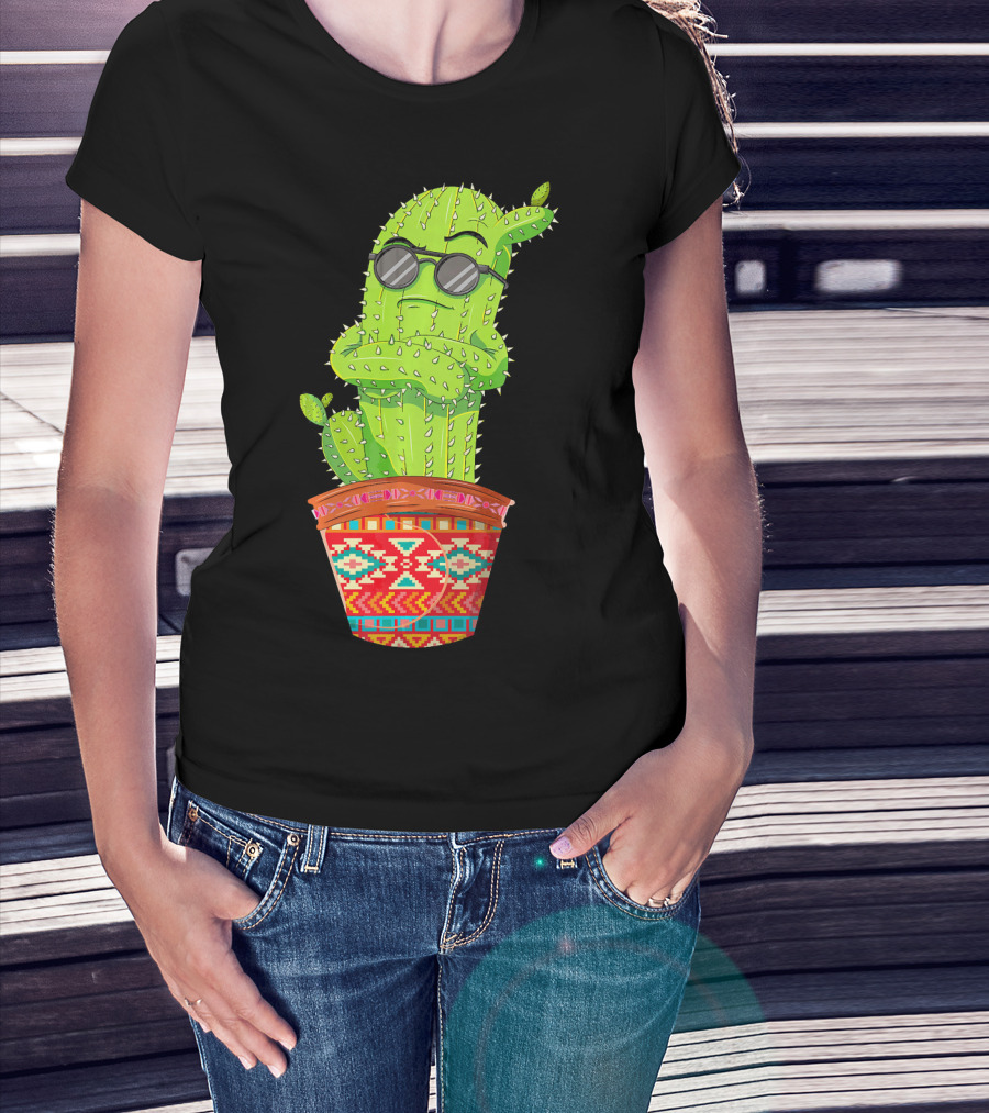 Cinco De Mayo Cool Cactus With Sunglasses In Mexican Pot T-Shirt