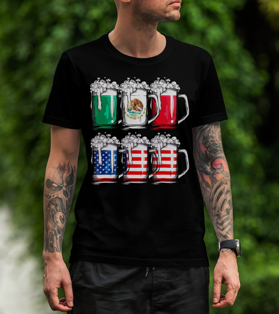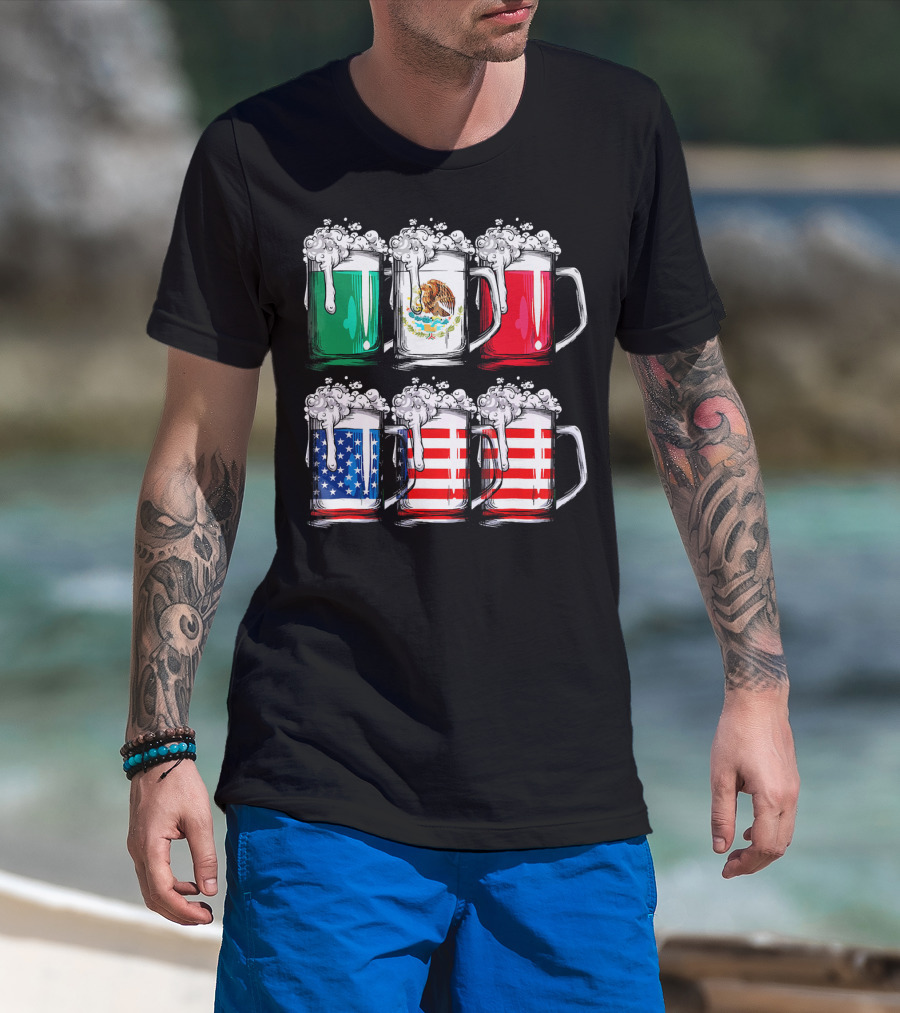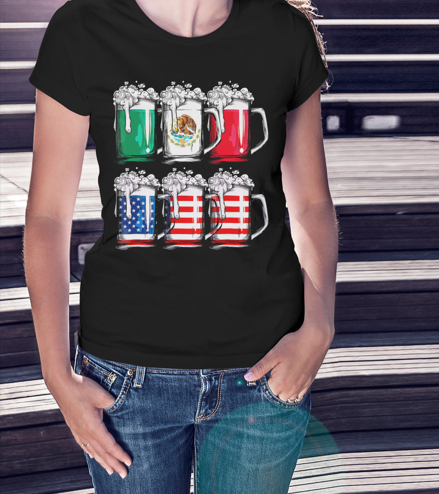 Cinco De Mayo Beer Mexican American Flag Mugs T-Shirt