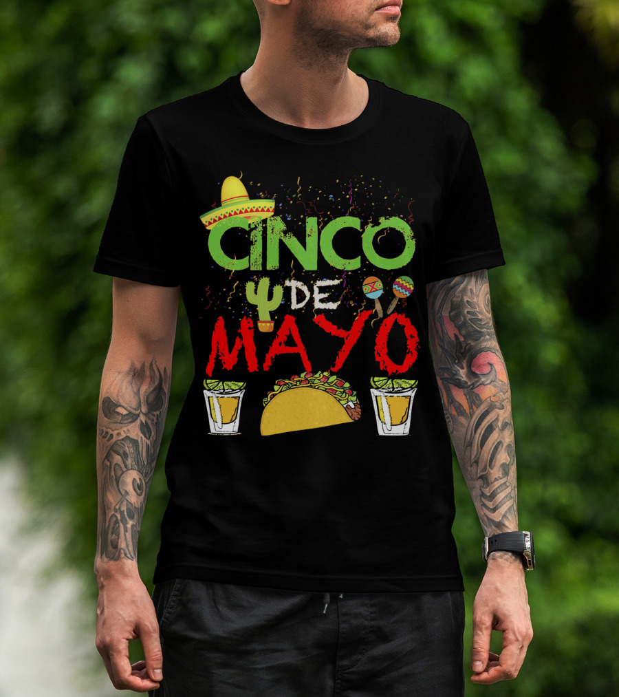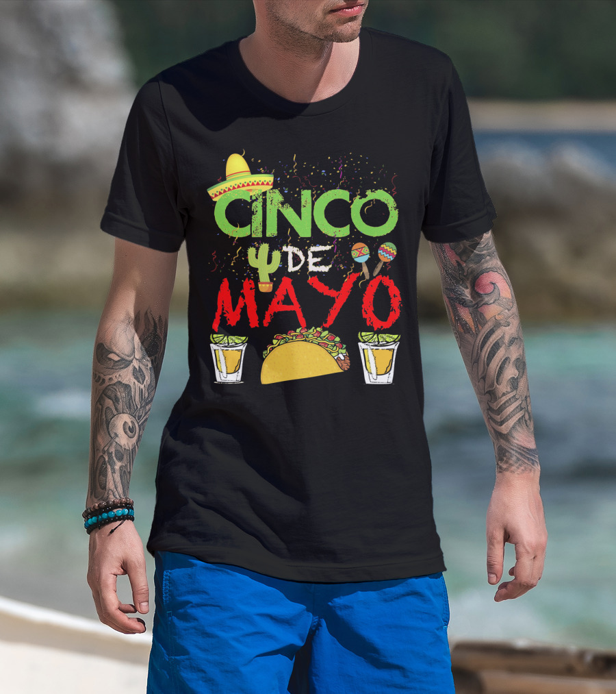 Cinco De Mayo Sombrero Maracas Taco Cactus Drinks Fiesta T-Shirt