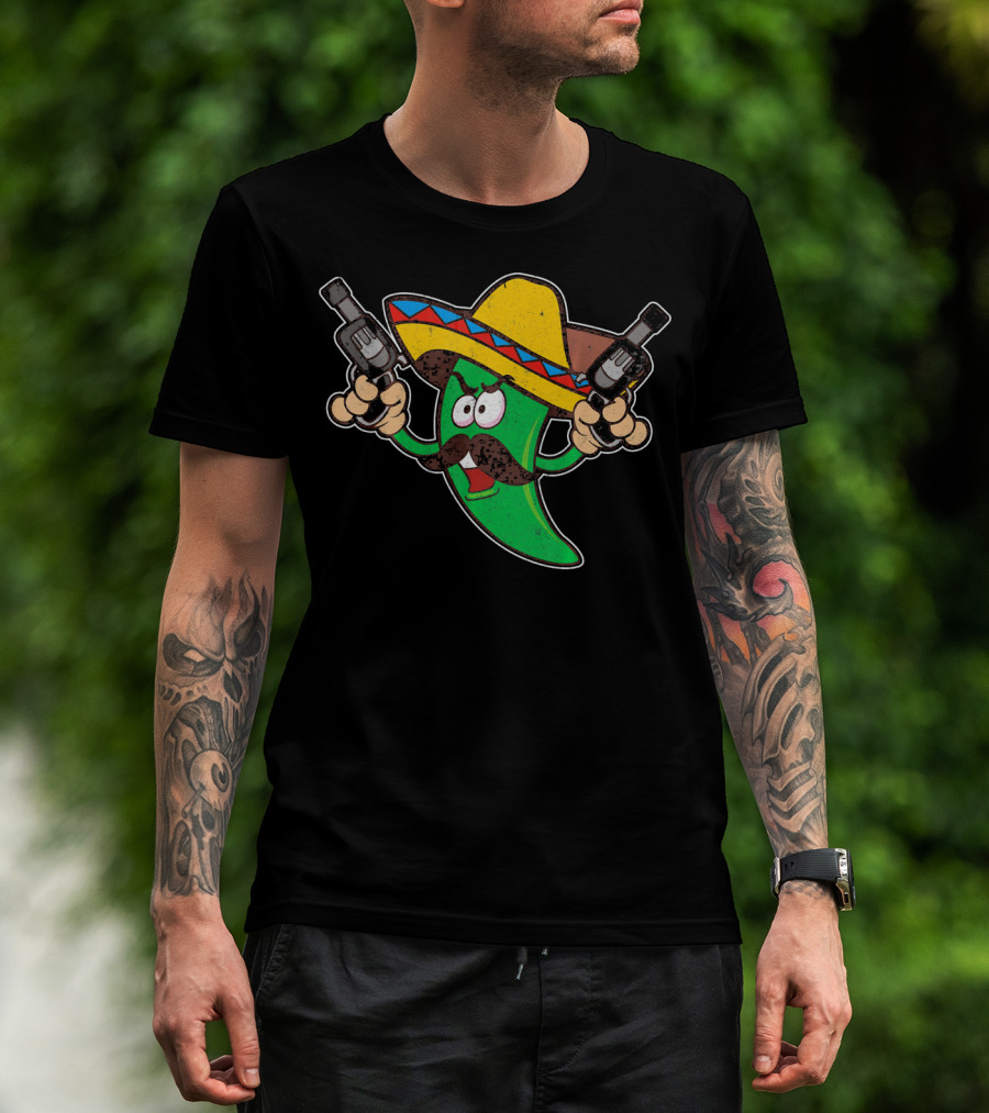 Jalapeno Business Funny Cinco De Mayo Sombrero Gunslinger Pepper T-Shirt
