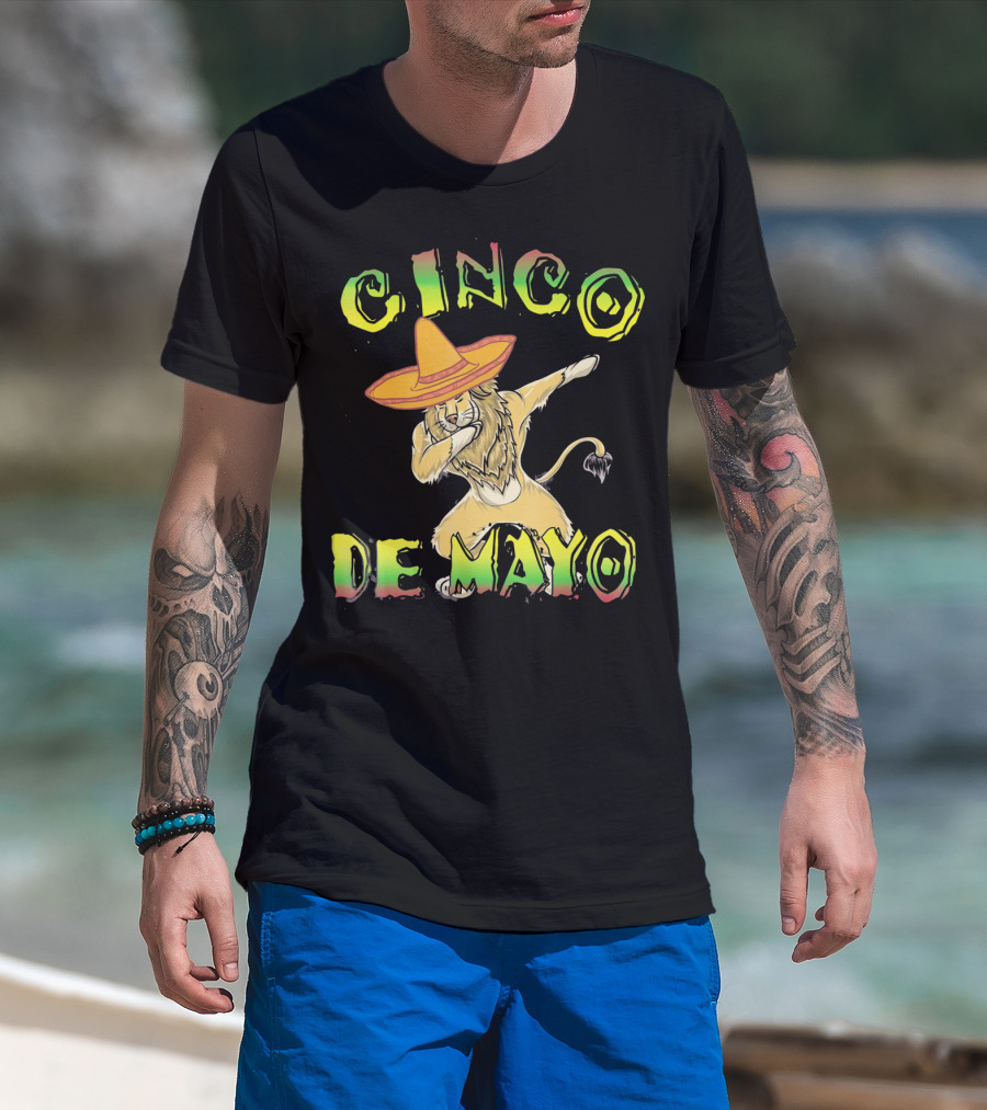 Cinco De Mayo King Of The Jungle Dabbing Lion With Sombrero T-Shirt