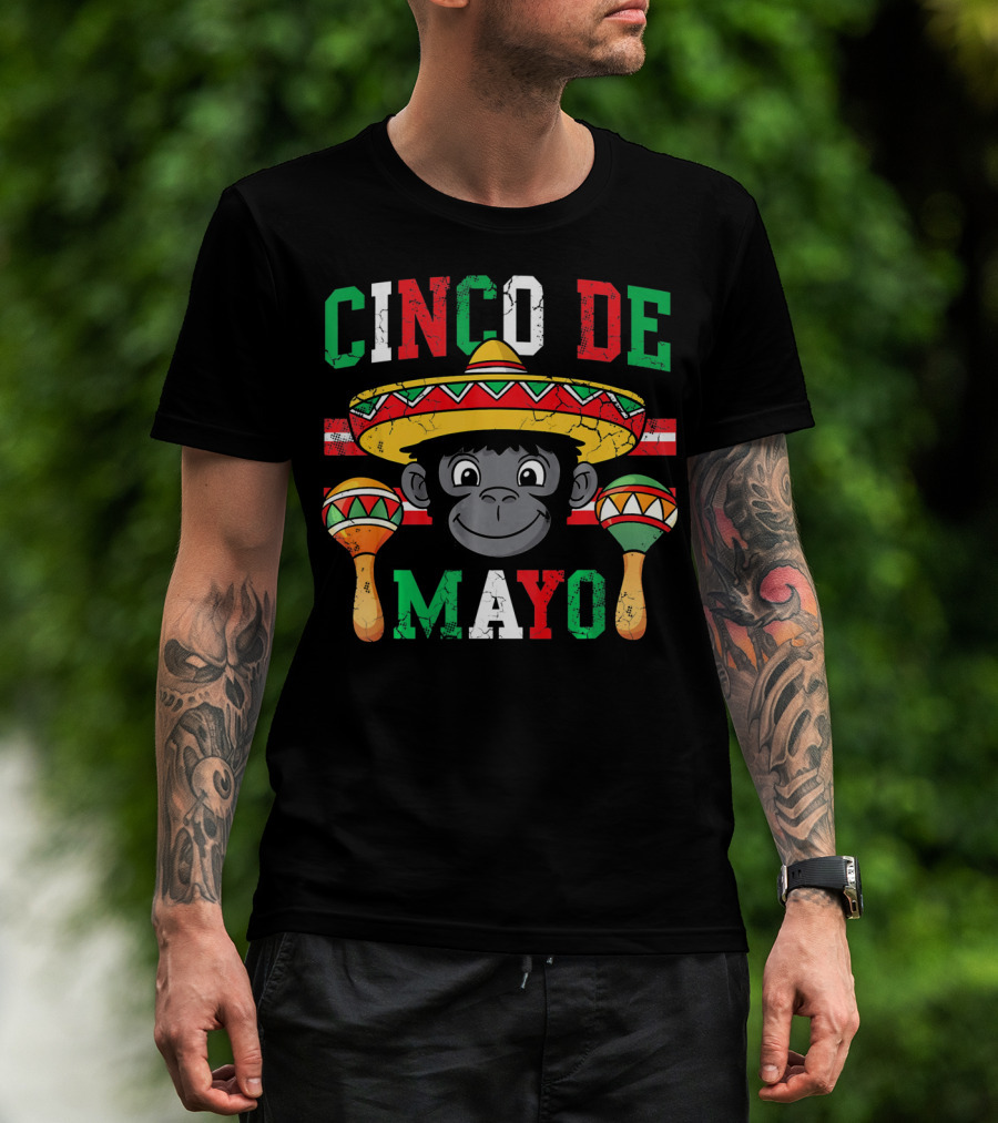 Cinco De Mayo Monkey Sombrero Maracas T-Shirt