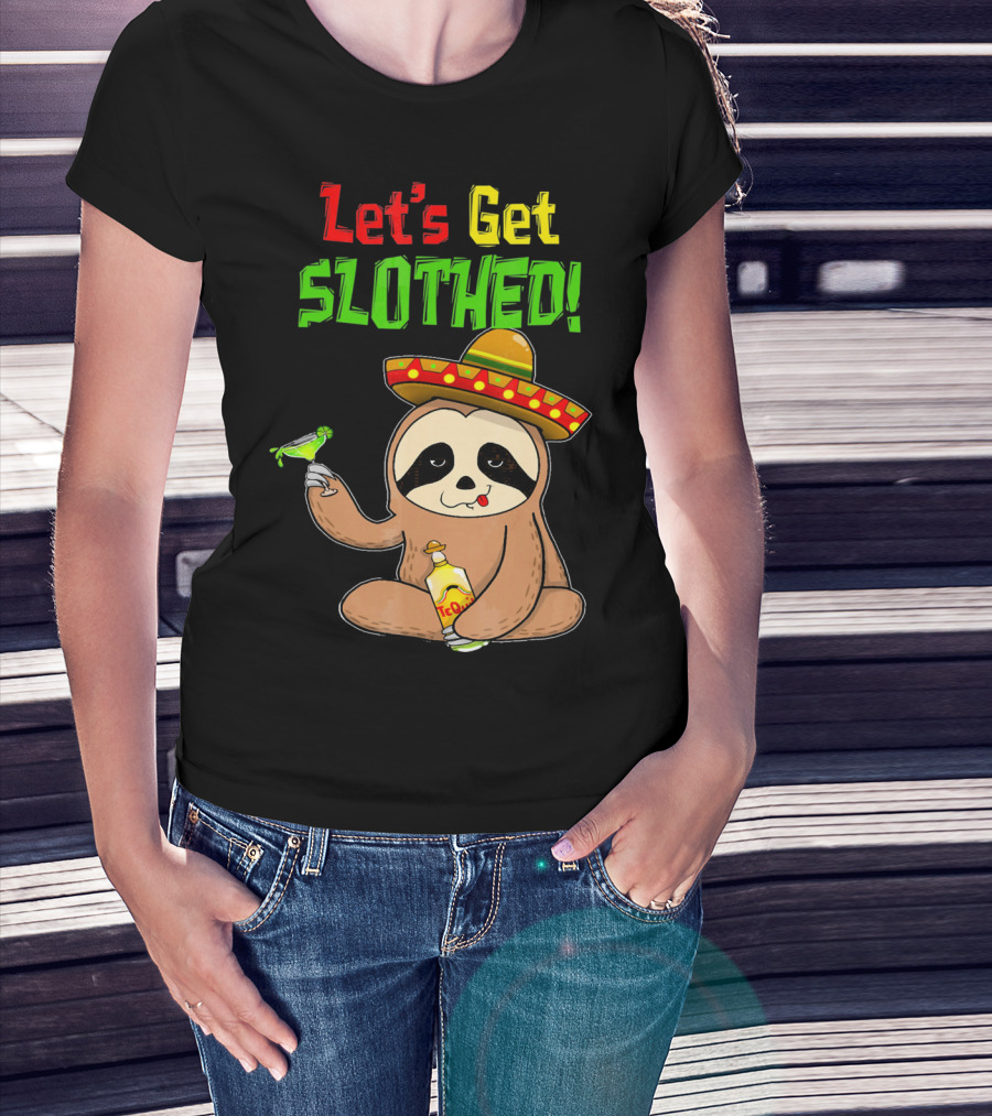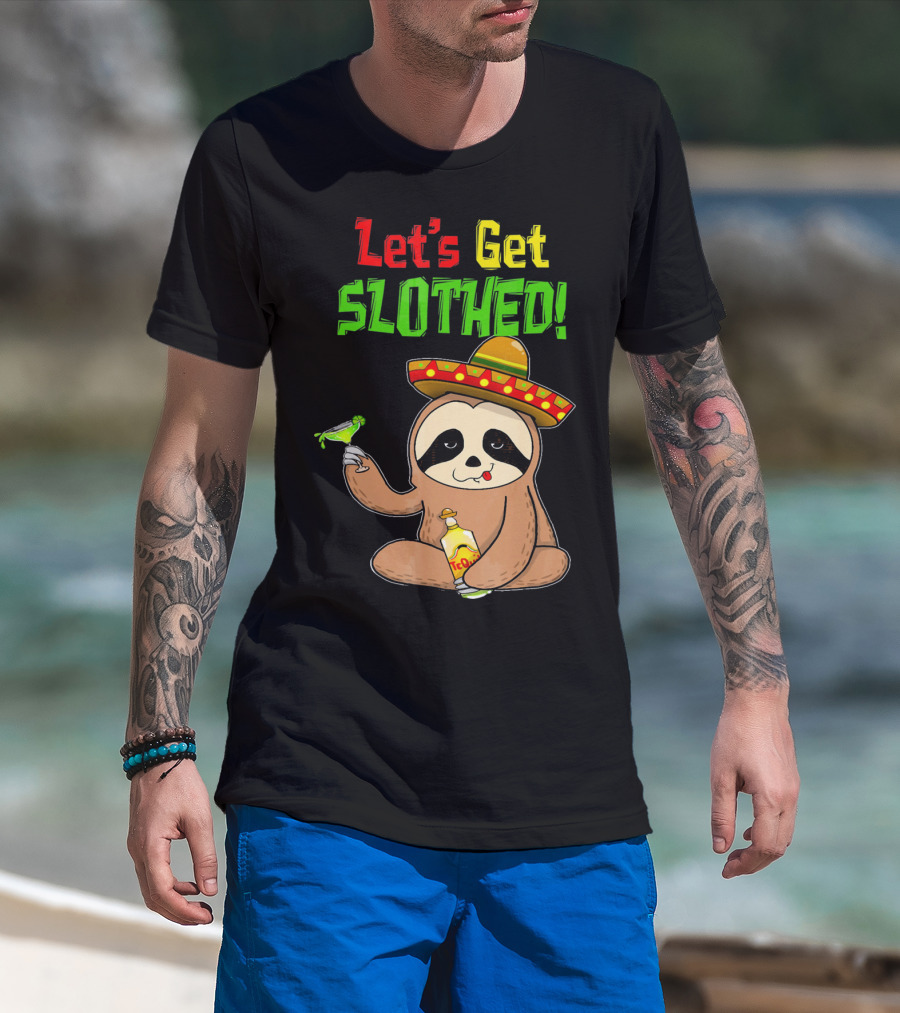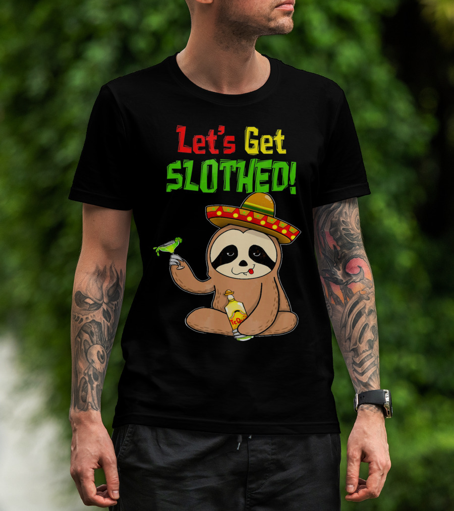 Let's Get Slothed Sloth Cinco De Mayo Tequila Sombrero Funny T-Shirt