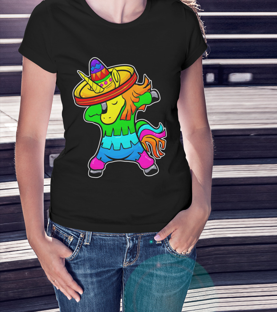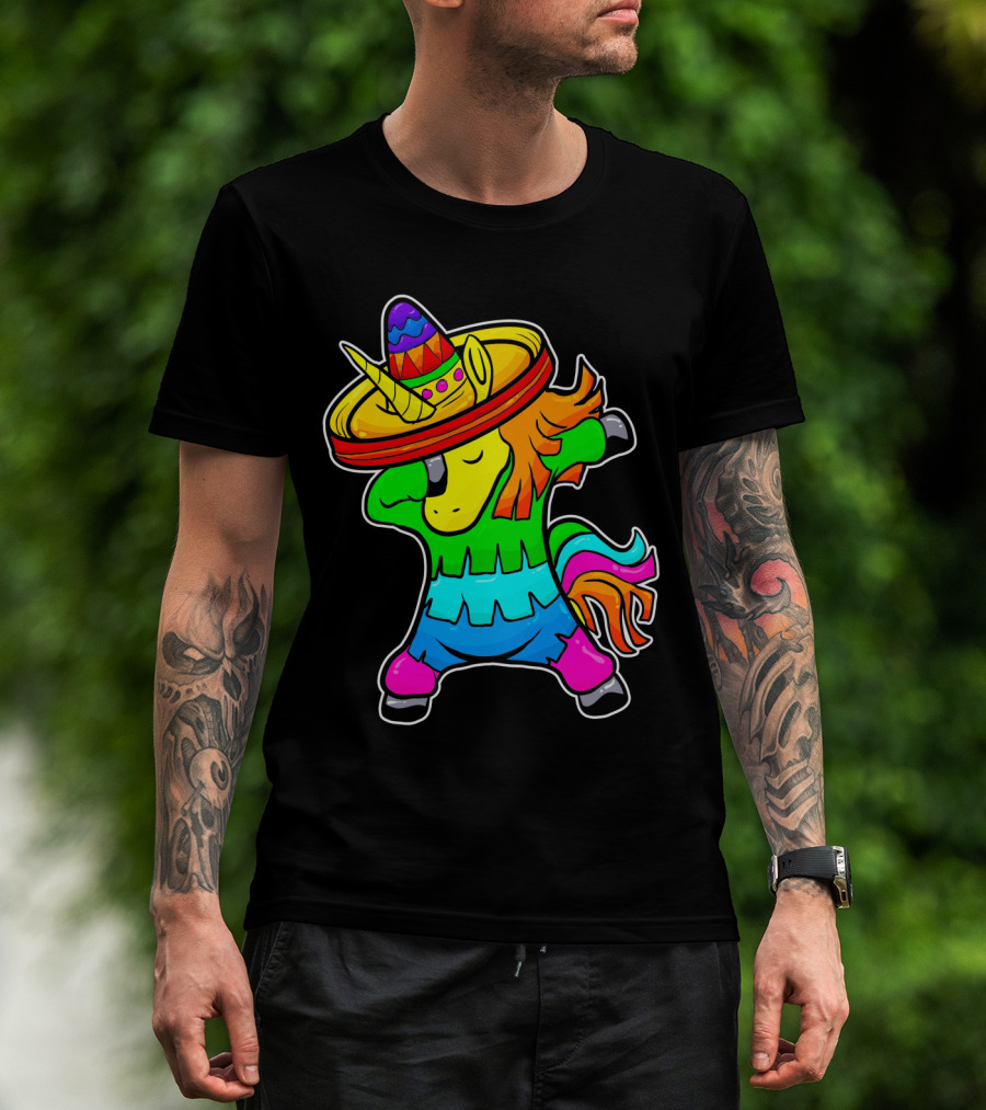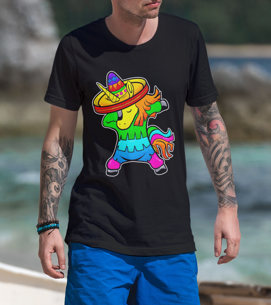 Cinco De Mayo Rainbow Sombrero Dabbing Unicorn T-Shirt