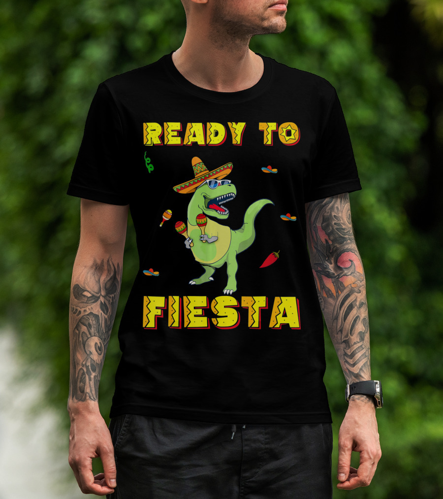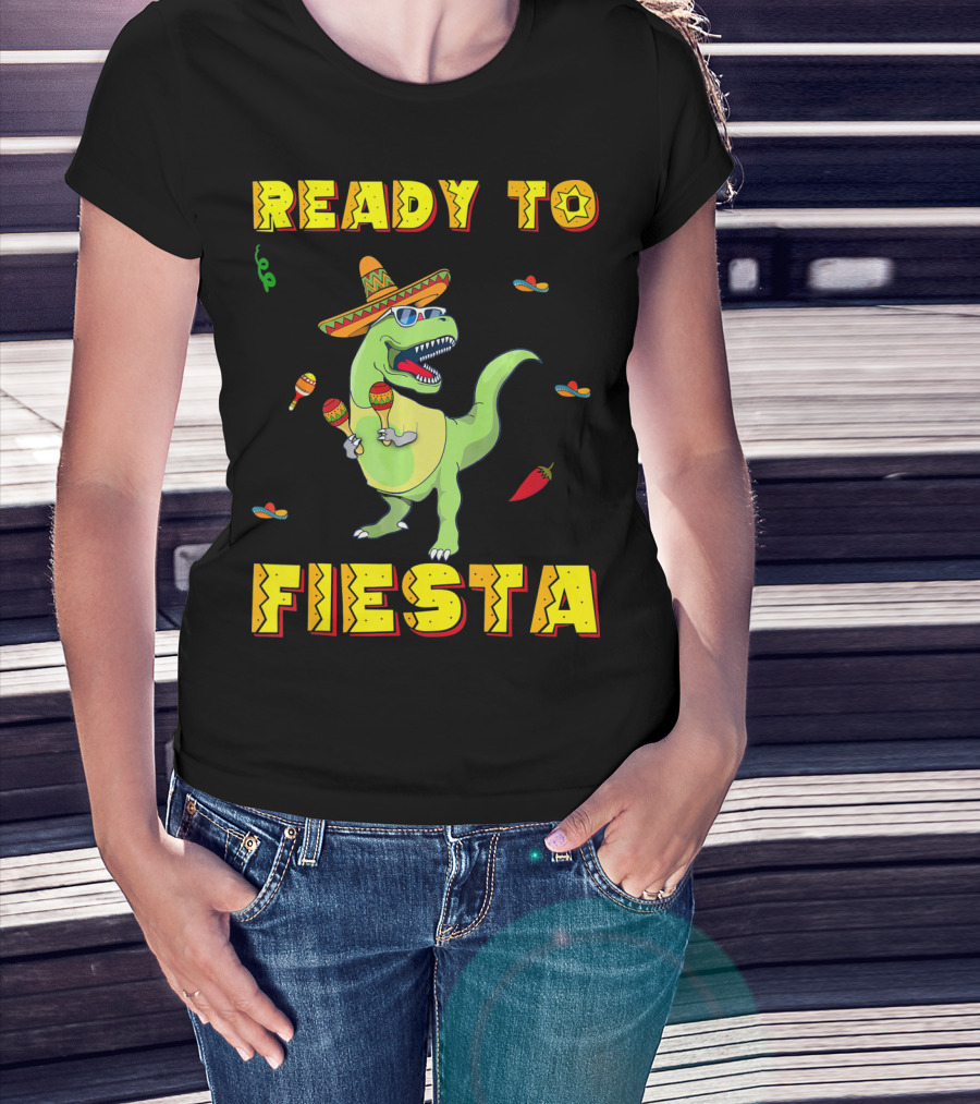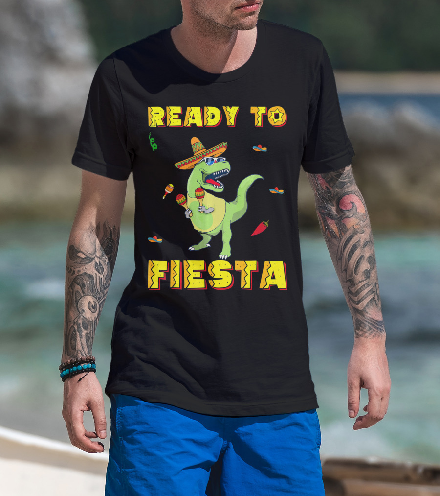 Ready To Fiesta Dinosaur Sombrero Maracas Cinco De Mayo T-Shirt