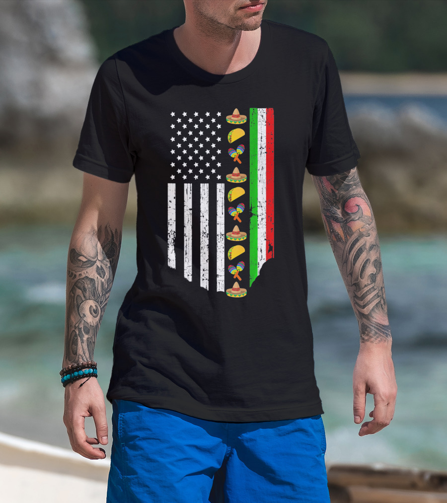 American Flag Tacos Sombrero Maracas Cinco De Mayo T-Shirt