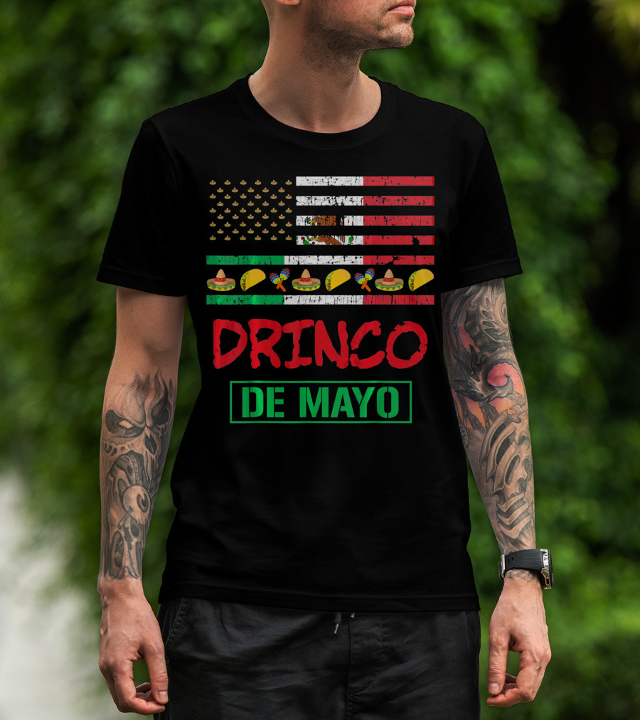 Drinko De Mayo Funny American Flag Cinco Celebration Tacos Sombrero Maracas T-Shirt
