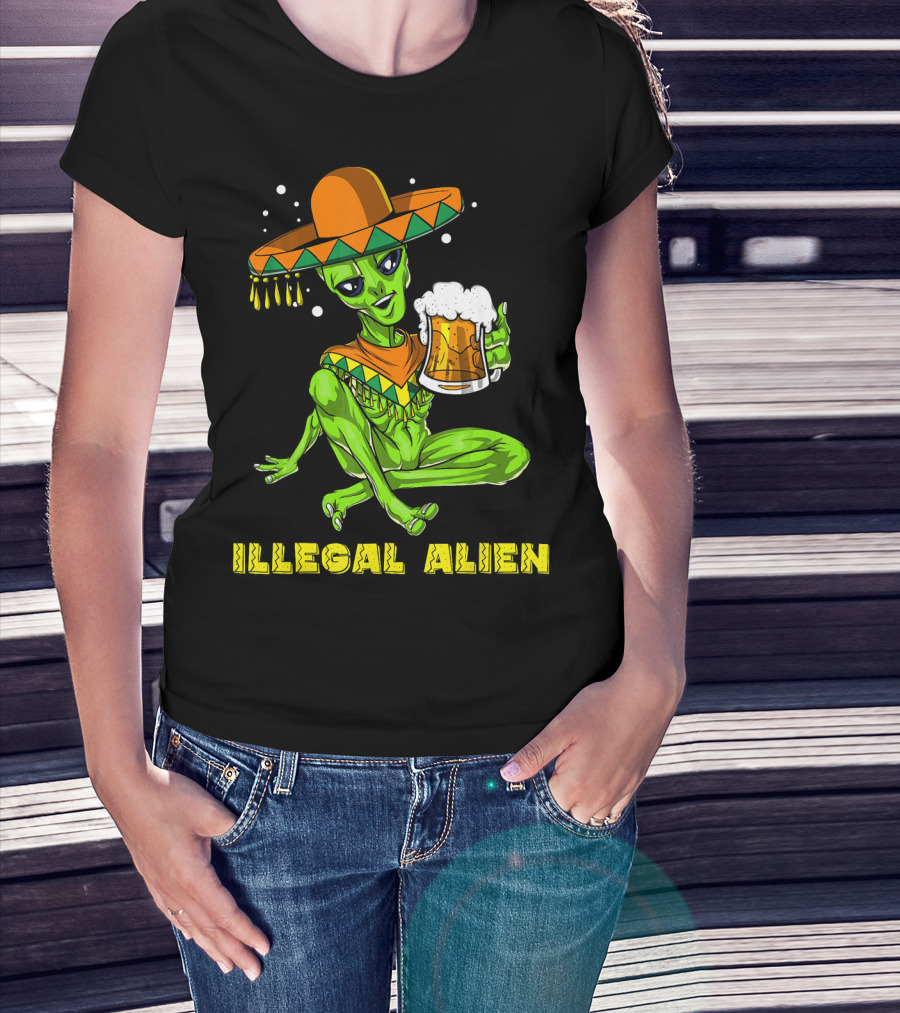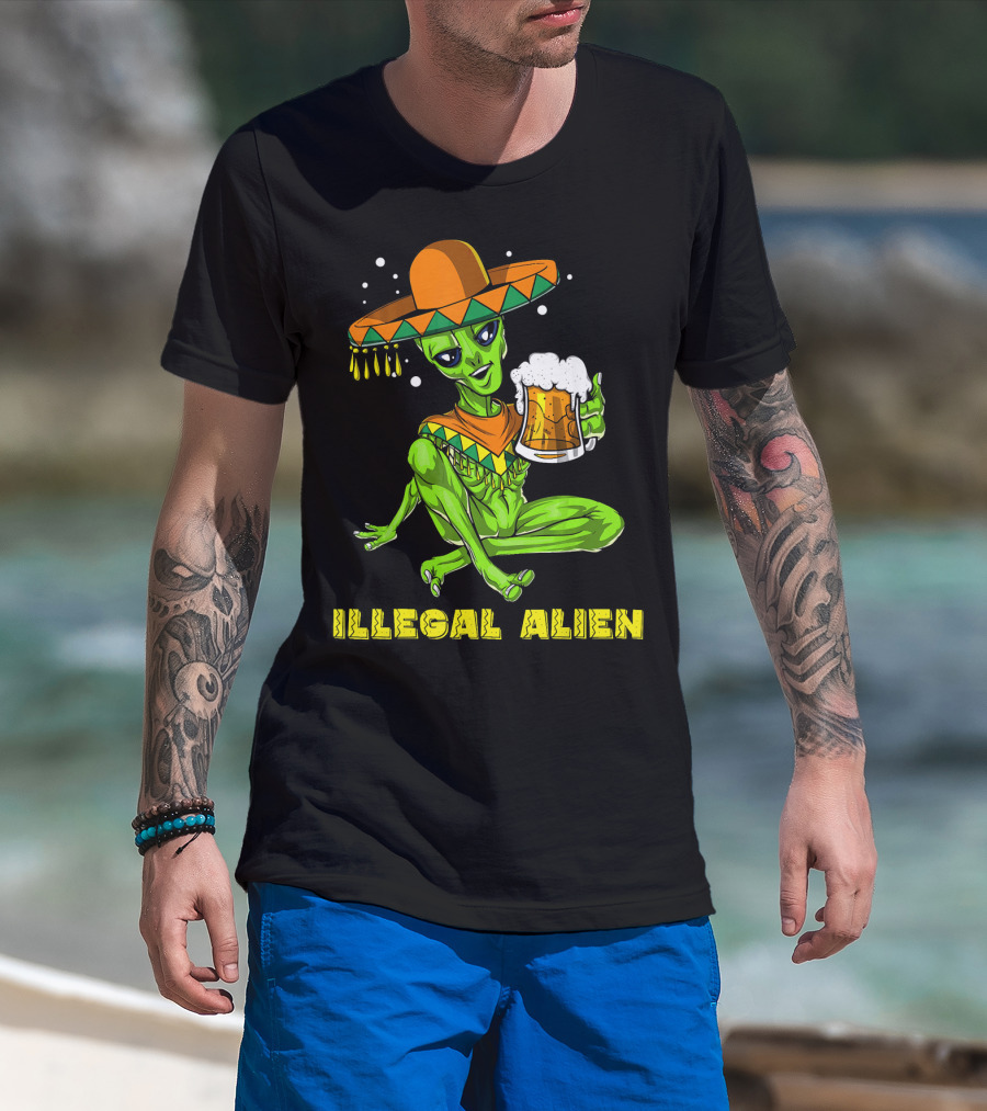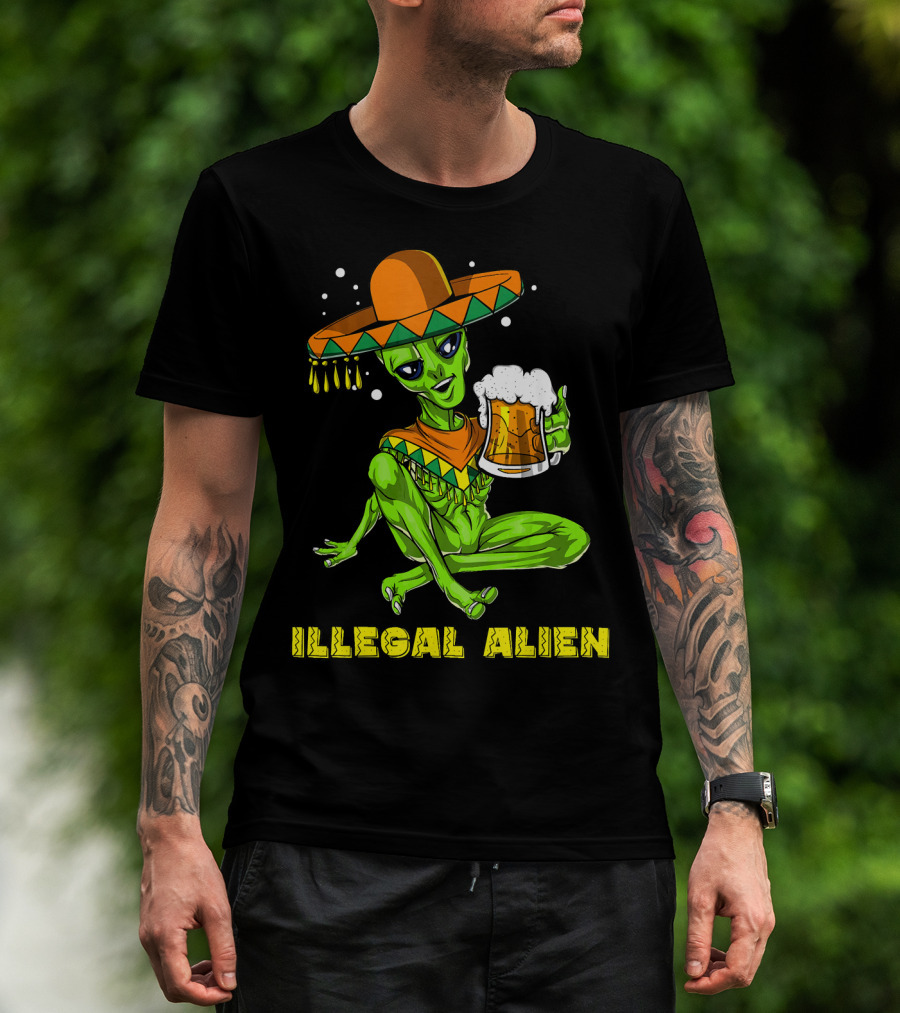 Illegal Alien Cinco De Mayo Beer Sombrero Mexican Fies T-Shirt