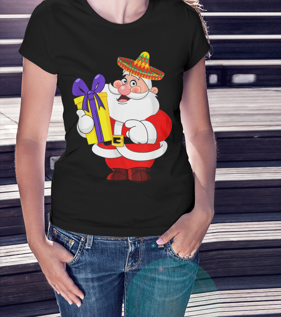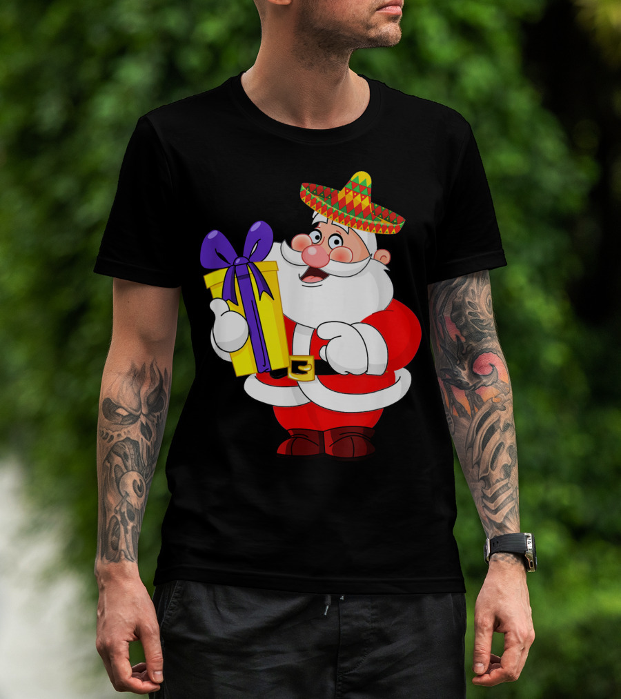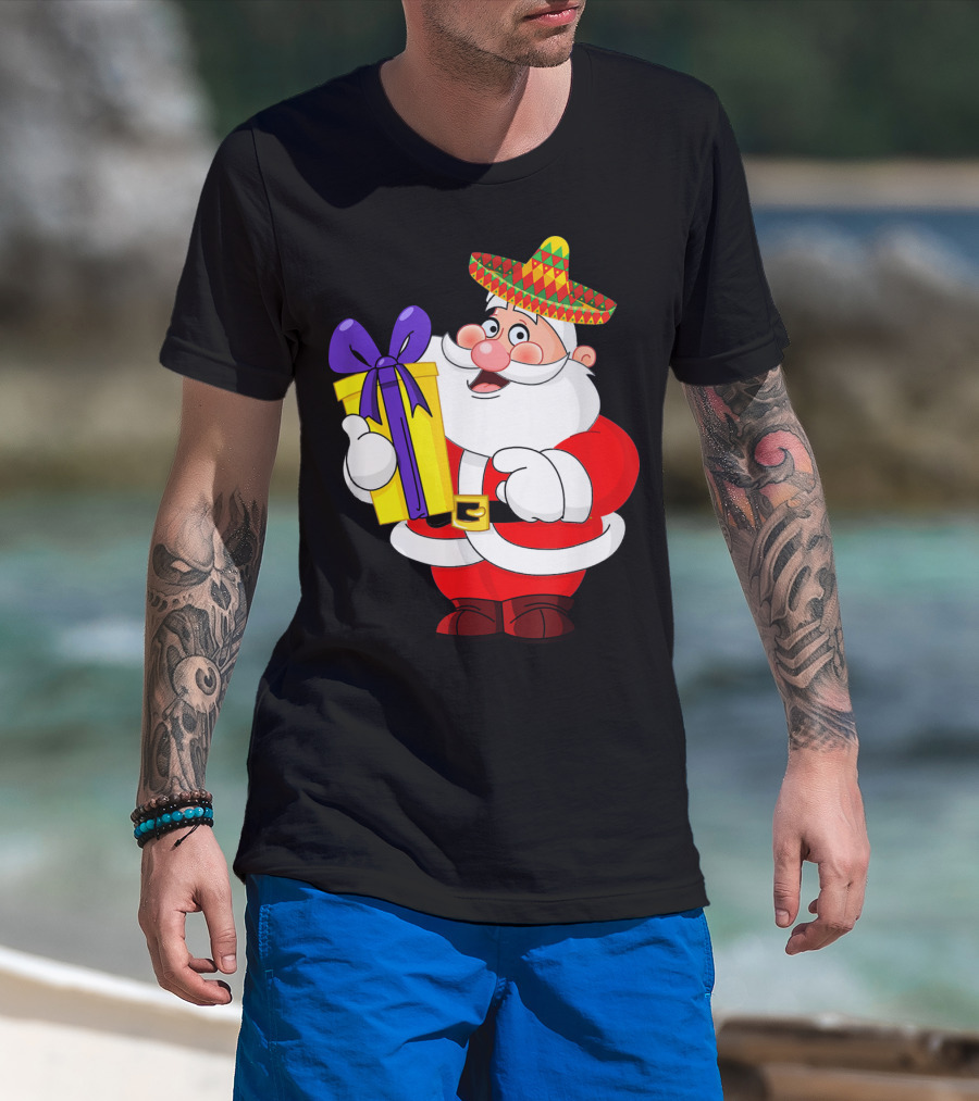 Cinco De Mayo Funny Sombrero Mexican Santa With Gift T-Shirt